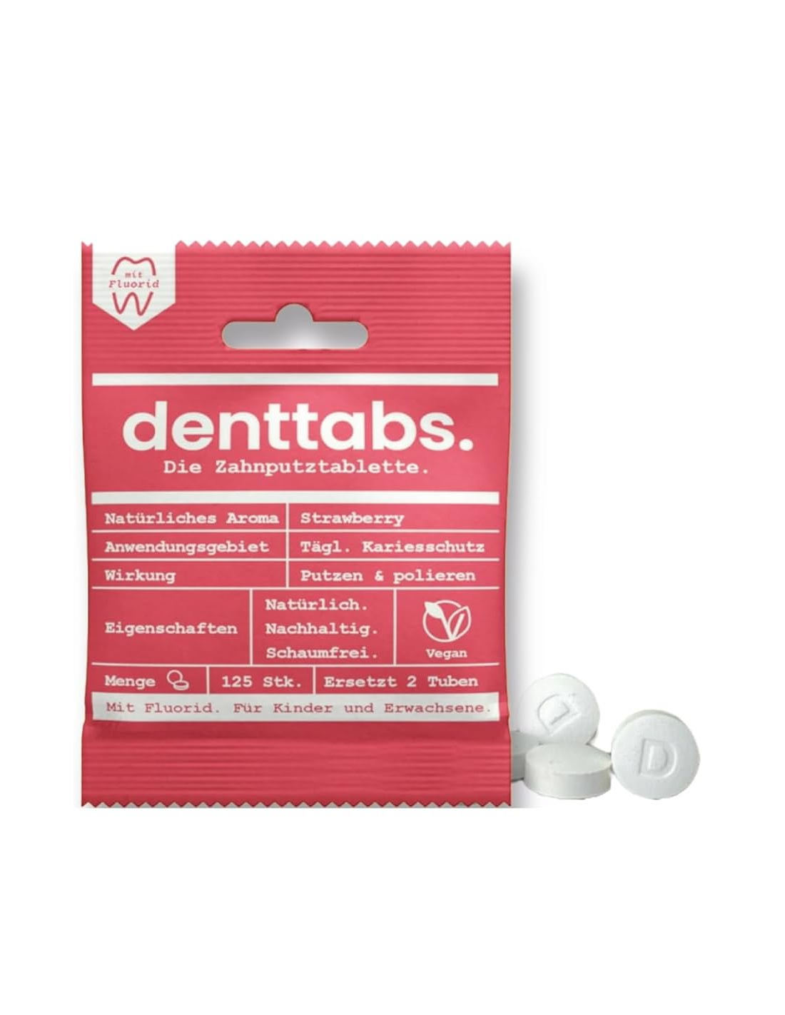 ¡Añade ahora el Dentífrico en pastillas ecológico, sabor fresa niños - con fluor,(500pm), 125ud de Denttabs a tu carrito y asegura una sonrisa saludable y feliz para tus pequeños!