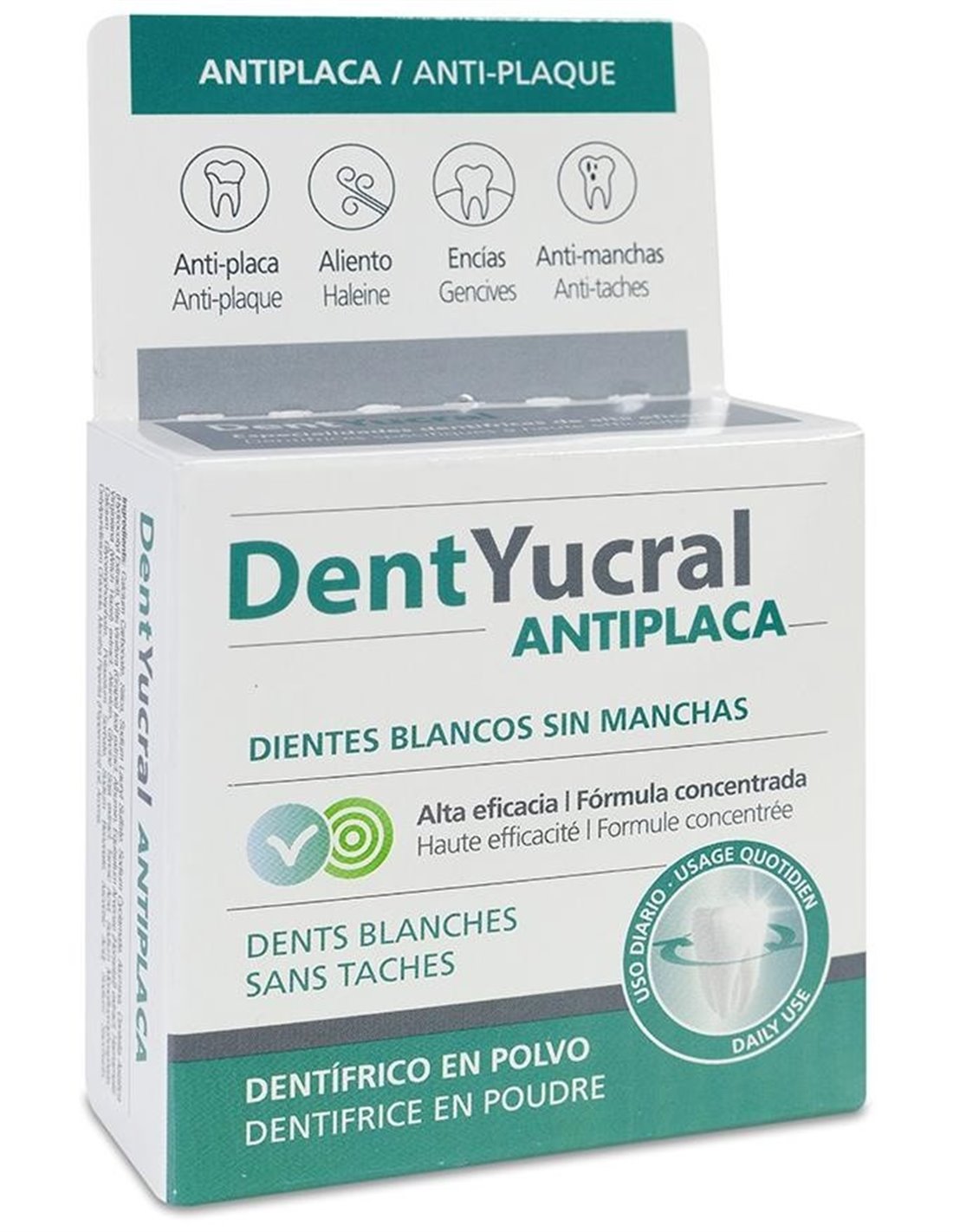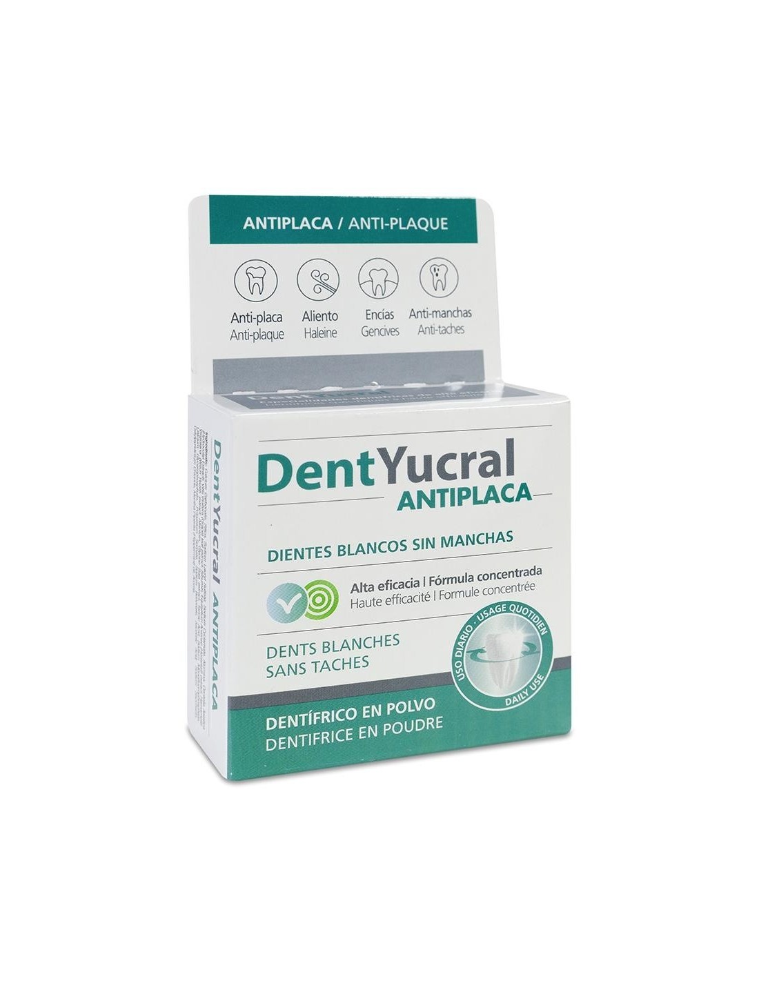 ¡No esperes más! Añade ahora Dentyucral (Eucryl)Polvo Antiplaca 60 G de Dentyucral a tu carrito y comienza a disfrutar de una sonrisa más limpia y radiante desde hoy mismo.
