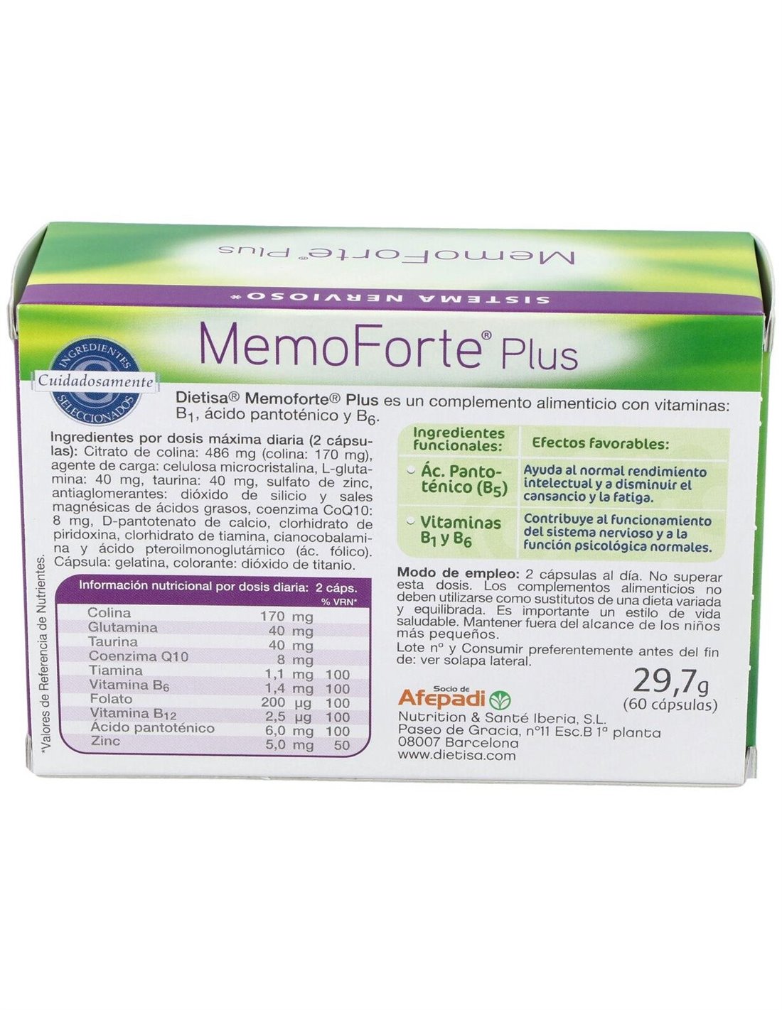 - Contiene ingredientes que contribuyen al mantenimiento de la memoria y la concentración, facilitando el enfoque en actividades diarias.
