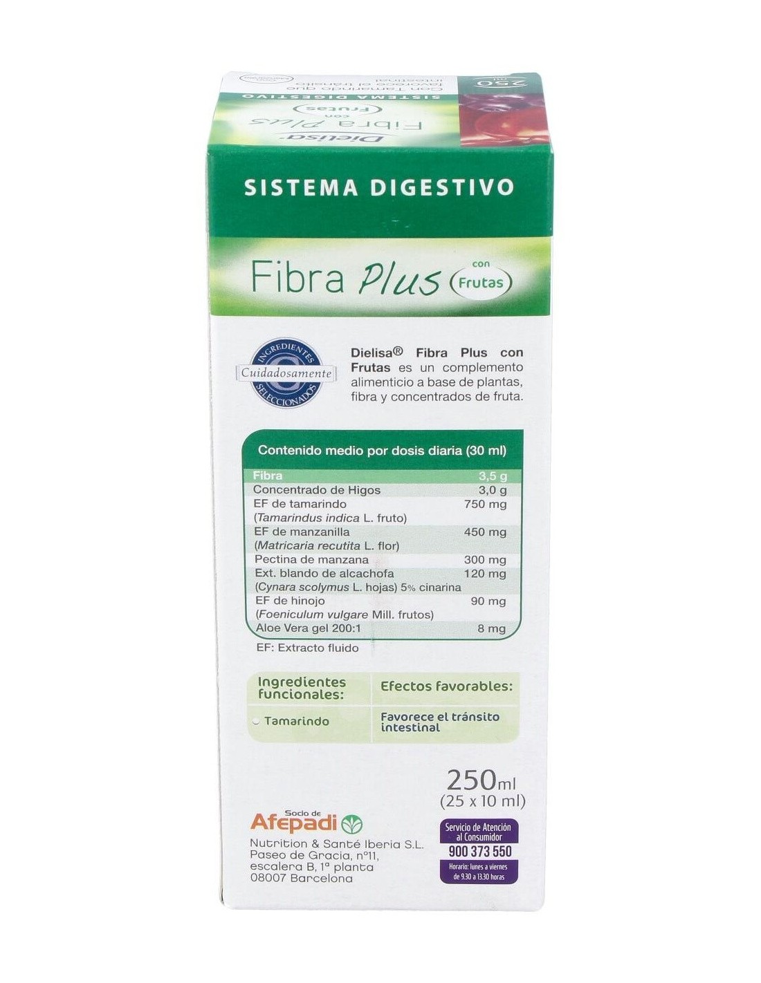 DIELISA®Fibra Plus Con Frutas Envase 250 ml de Dielisa® es un suplemento alimenticio para personas que buscan mejorar su digestión. Contiene fibra natural y frutas que contribuyen al bienestar intestinal en 8-12 días.