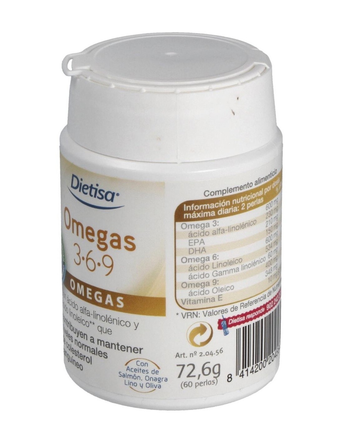 Omegas 3-6-9 Envase 60 Perlas (30-60 Días) de Dielisa® es un suplemento diseñado para personas que buscan complementar su alimentación con ácidos grasos esenciales. Este producto es adecuado para quienes desean apoyar funciones relacionadas con el bienestar general a través de una fórmula equilibrada.