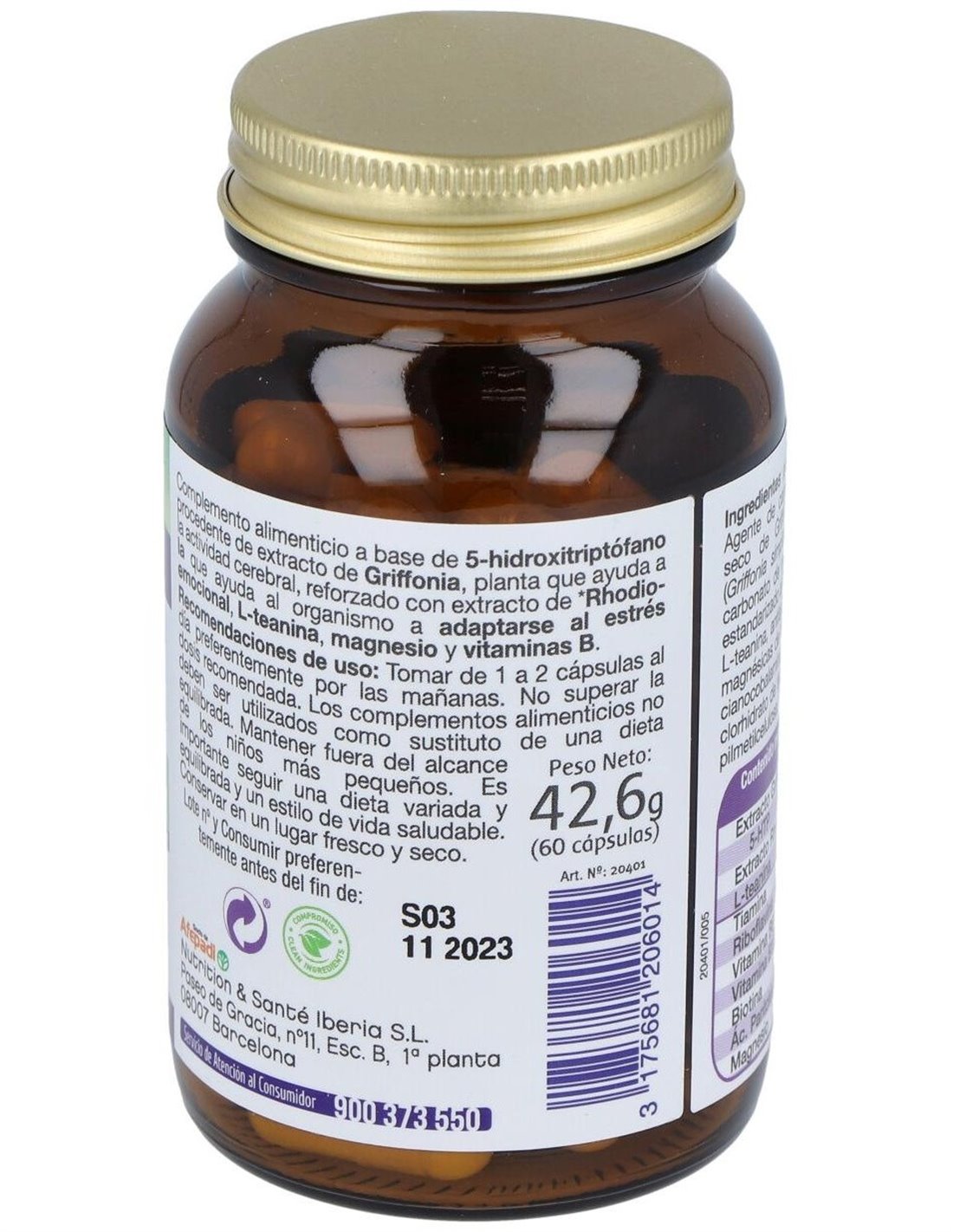 Combina ingredientes sinérgicos para afrontar el estrés y equilibrar el estado de ánimo, favoreciendo el bienestar emocional con ext. Rhodiola: que ayuda al organismo a adaptarse al estrés emocional, y reduciendo el cansancio y la fatiga gracias a su contenido en magnesio, ácido pantoténico, vitaminas B2, B6 y B12.