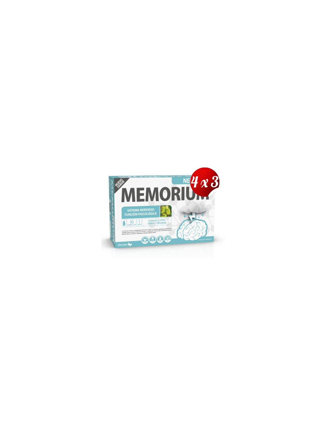 DIETMED.El Pack 4x3 uds Memorium Neuro 30Amp. de Dietmed es un complemento nutricional para adultos que contribuye al bienestar cerebral mediante una fórmula equilibrada de ingredientes seleccionados.