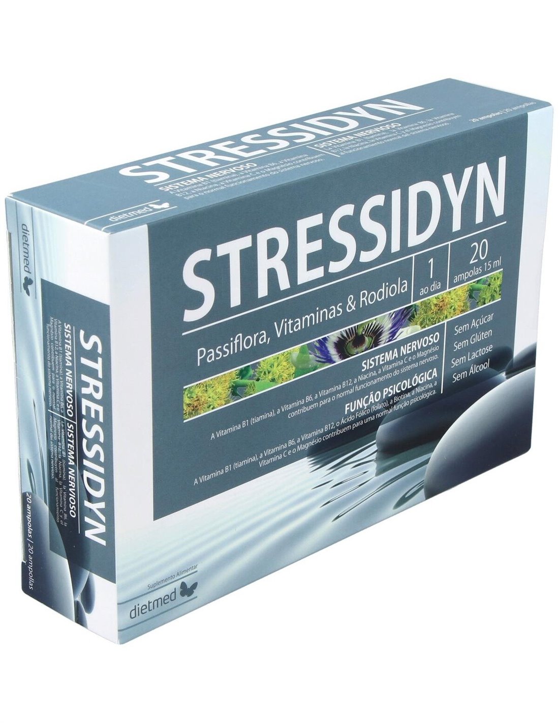 Stressidyn 20Amp. de Dietmed es un suplemento diseñado para personas que buscan apoyar su bienestar diario en situaciones de estrés y fatiga. Su formulación está orientada a contribuir en el mantenimiento del equilibrio emocional y la función normal del sistema nervioso.