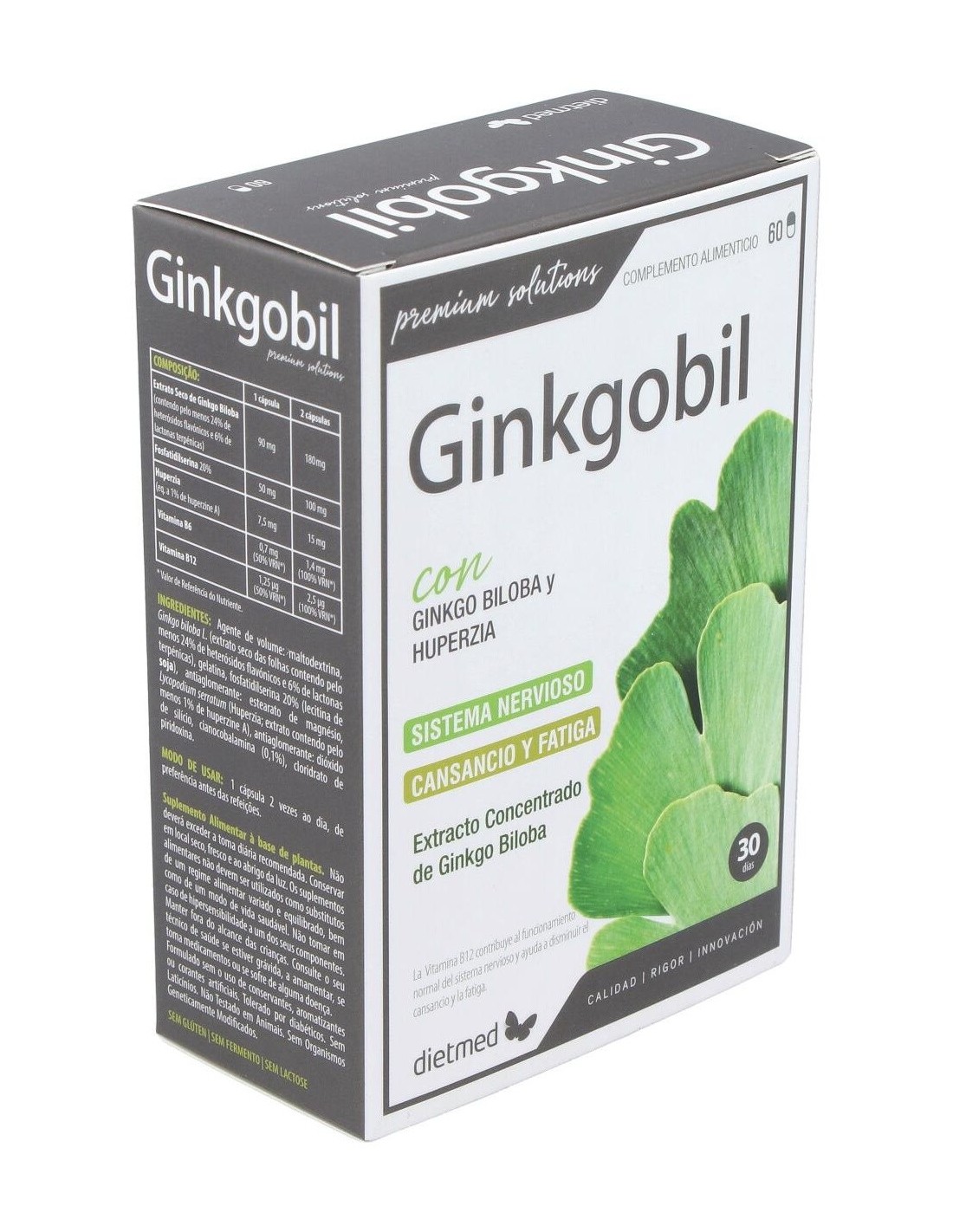 Elaborado con ingredientes seleccionados y bajo estrictos controles de calidad, Ginkgobil 60Cap. de Dietmed combina eficacia y seguridad en su composición. Su diseño en cápsulas permite una absorción adecuada y una administración cómoda.