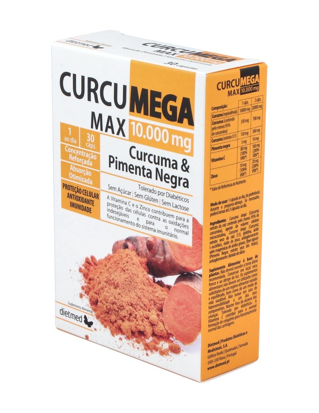 DIETMEDConcentración reforzada con absorción optimizada de cúrcuma y pimienta negra. La vitamina C y el zinc contribuyen a la protección de las células frente al estrés oxidativo y al funcionamiento normal del sistema inmune.