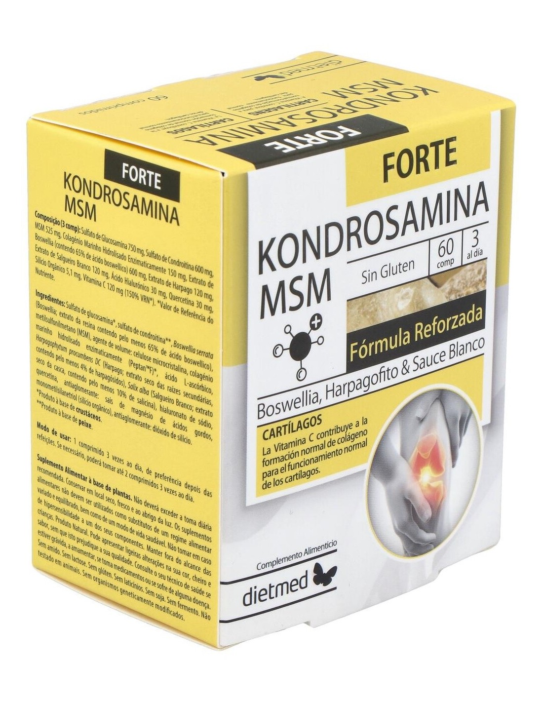 Kondrosamina Msm Forte 60Comp. de Dietmed es un complemento alimenticio diseñado para personas que buscan apoyar la salud articular dentro de un estilo de vida activo y equilibrado. Su formulación combina ingredientes seleccionados para contribuir al mantenimiento del bienestar en las articulaciones.