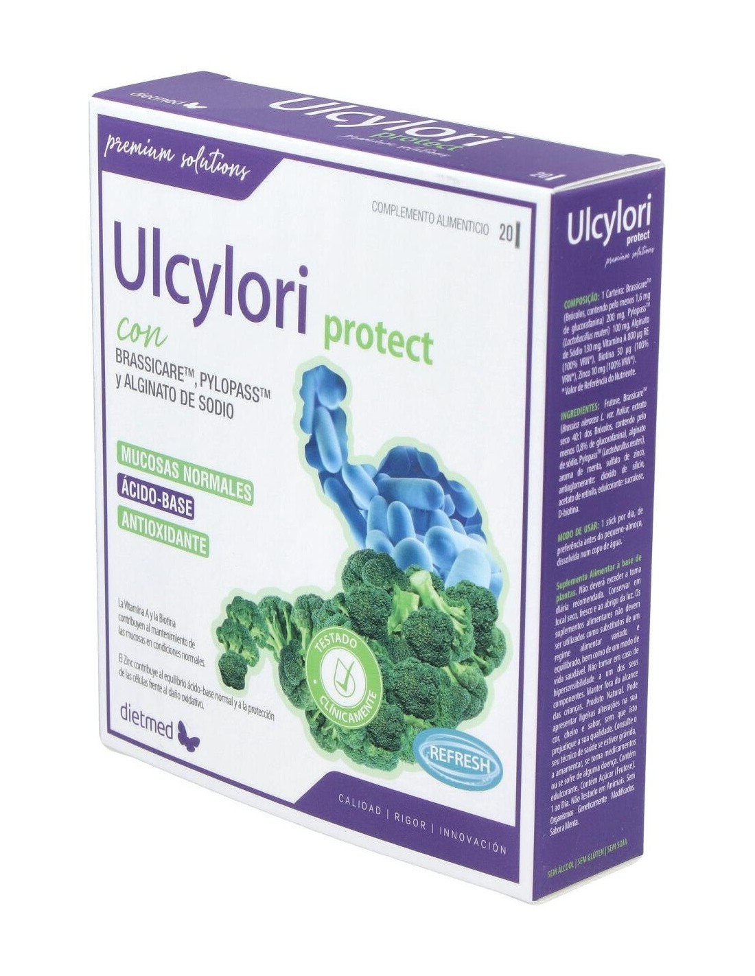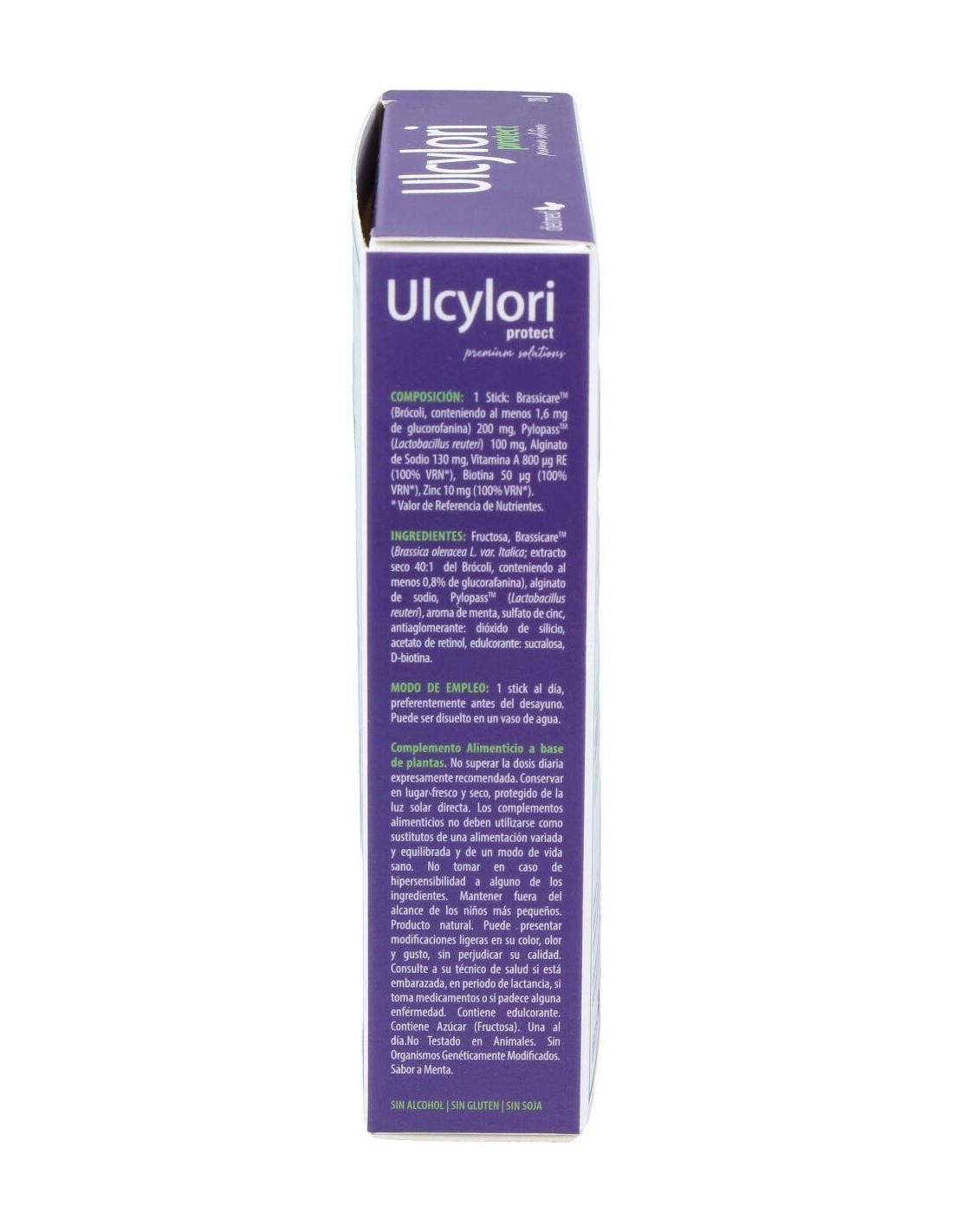 Brassicare (brócoli, que contiene al menos 1,6 mg de glucorafanina) 200 mg, Pylopass ( Lactobacillus reuteri ) 100 mg, alginato de sodio 130 mg, vitamina A 800 µg RE (100% VRN), biotina 50 µg (100% VRN), zinc 10 mg (100% VRN).