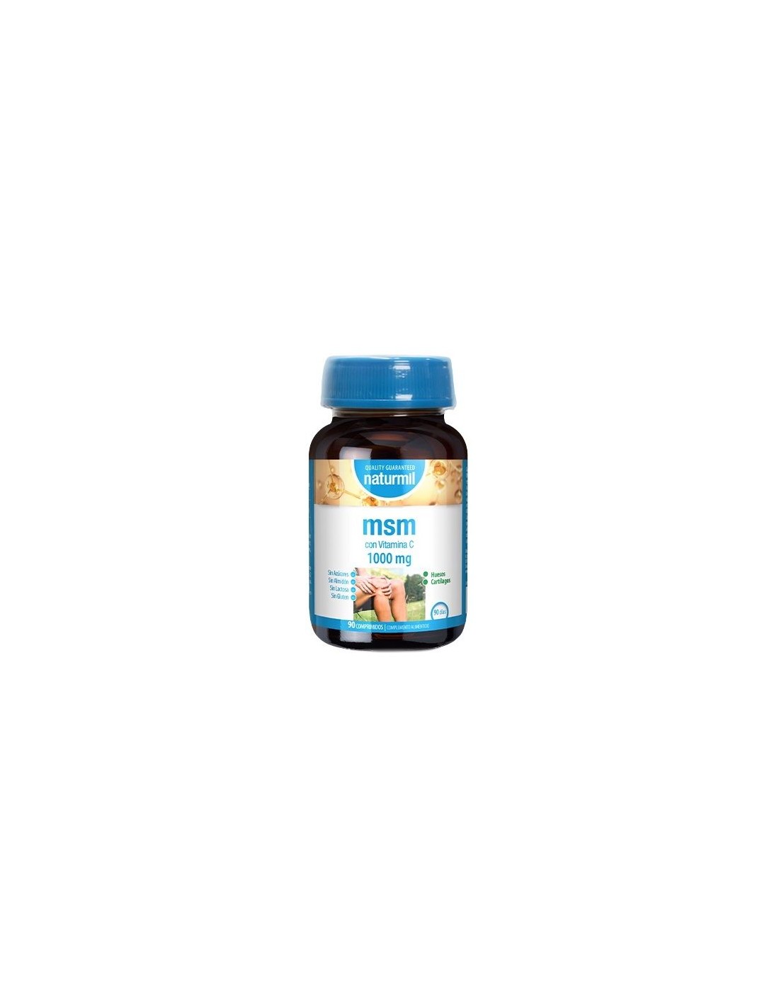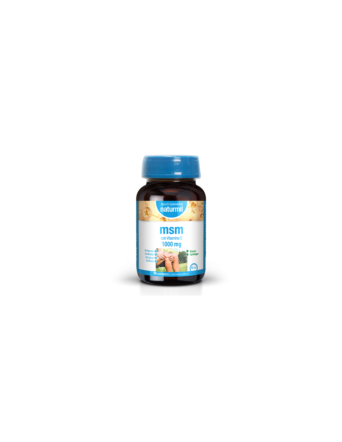El MSM (metilsulfonilmetano) es una fuente natural de azufre, necesario para la formación de colágeno, el primer constituyente del cartílago y tejido conjuntivo. Se añade vitamina C a esta fórmula para mejorar la absorción.La vitamina C es importante para la formación del colágeno, que contribuye al normal funcionamiento del cartílago articular, mientras que el Calcio es necesario para reforzar la estructura de los huesos y articulaciones.Composición activa por comprimido: