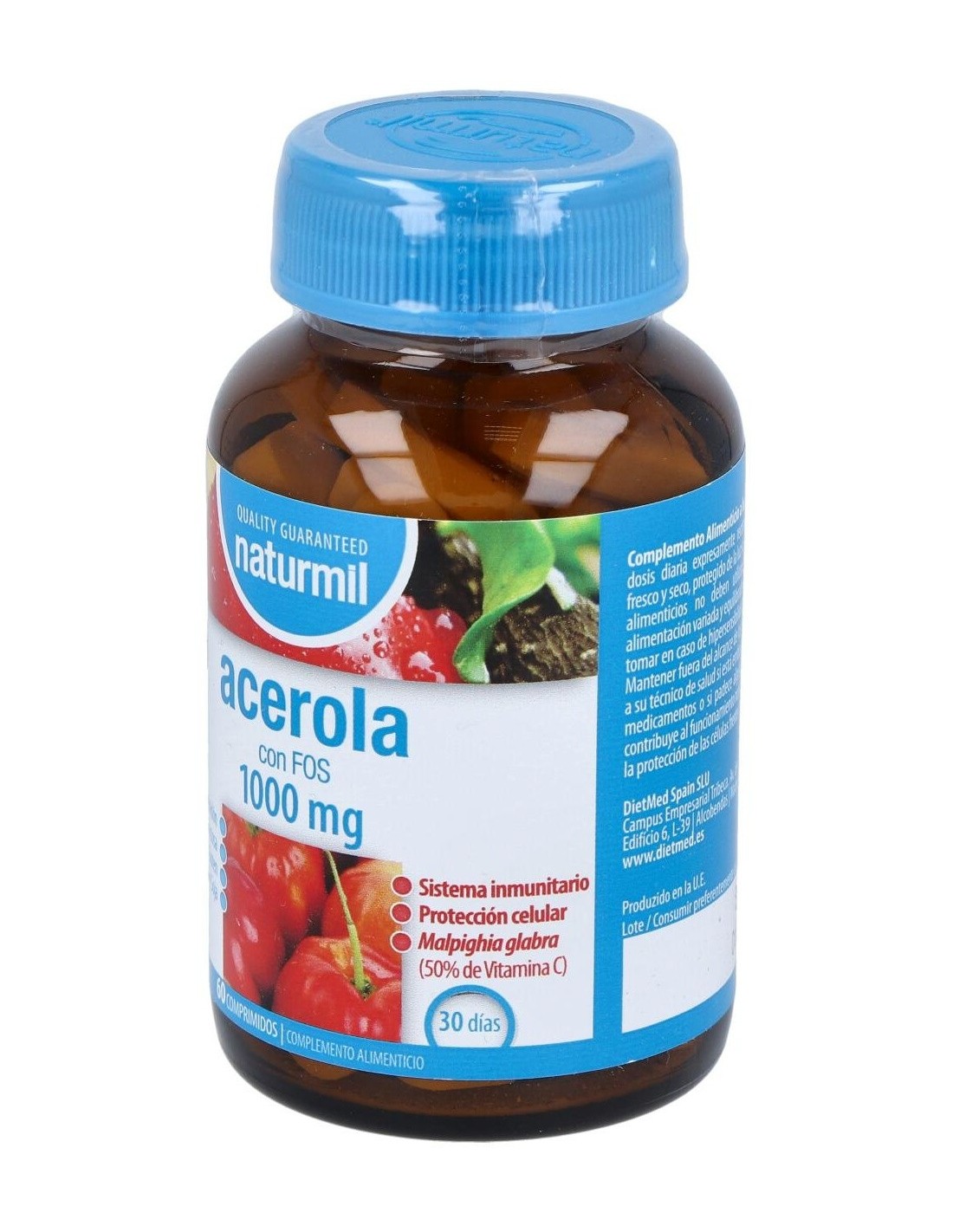 DIETMEDEl Acerola 1000Mg. 60Comp. de Dietmed es un suplemento vitamínico para personas que buscan apoyar su ingesta diaria de vitamina C, aportando 1000 mg por comprimido para contribuir al bienestar general.