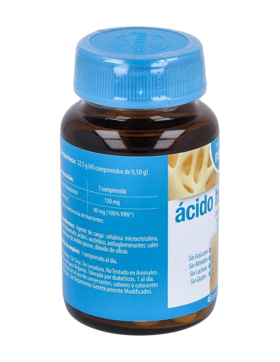 - Cada comprimido contiene 120 mg de ácido hialurónico, un componente natural presente en el cuerpo que contribuye a mantener la hidratación en las articulaciones y la piel.