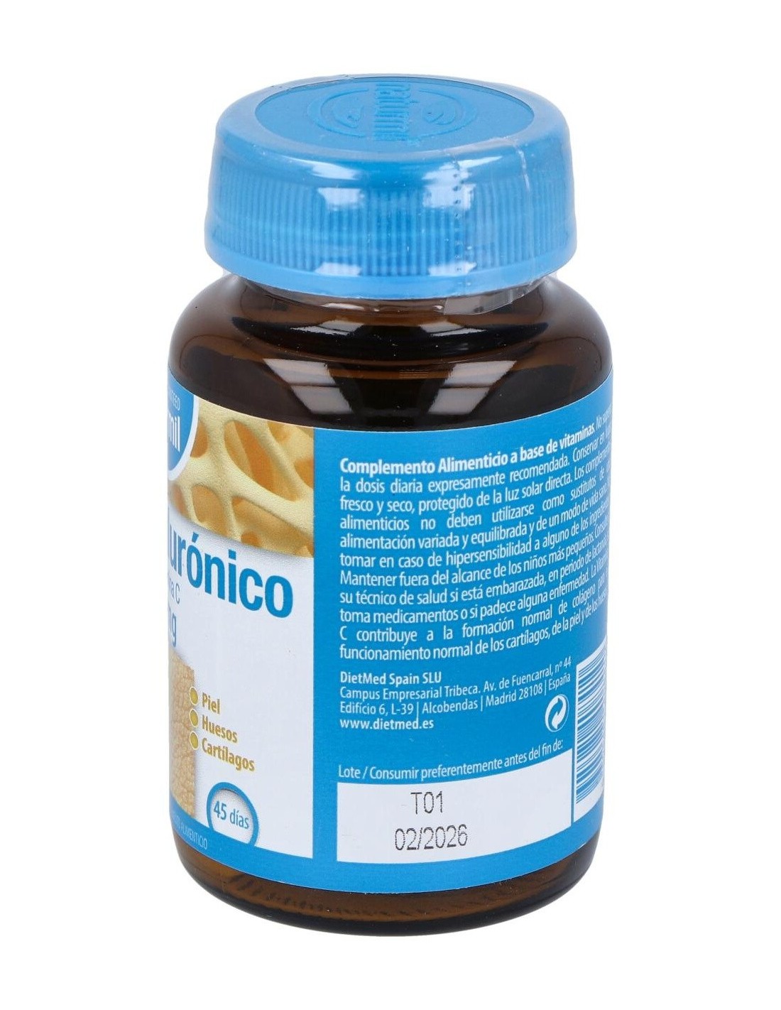 Acido Hialuronico 120Mg. 45Comp. de Dietmed es un suplemento diseñado para personas que buscan apoyar la hidratación y el cuidado de sus tejidos conectivos. Su formulación está pensada para integrarse fácilmente en rutinas diarias orientadas al bienestar general.
