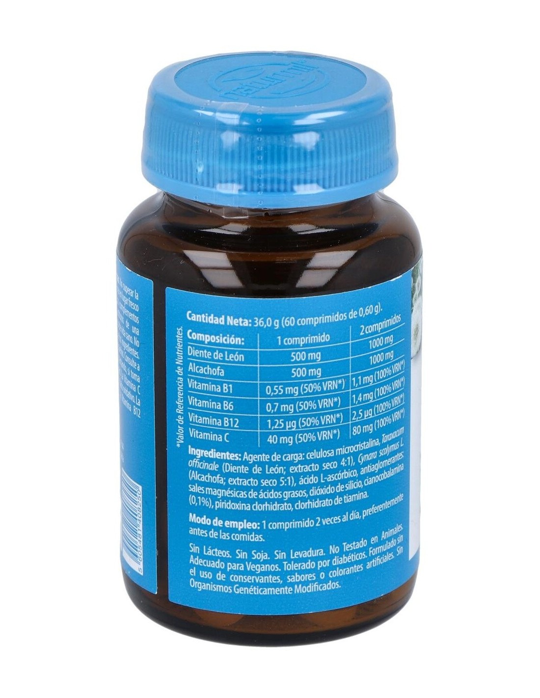 - Contiene extractos de alcachofa y diente de león, reconocidos por su uso tradicional en complementos dietéticos.