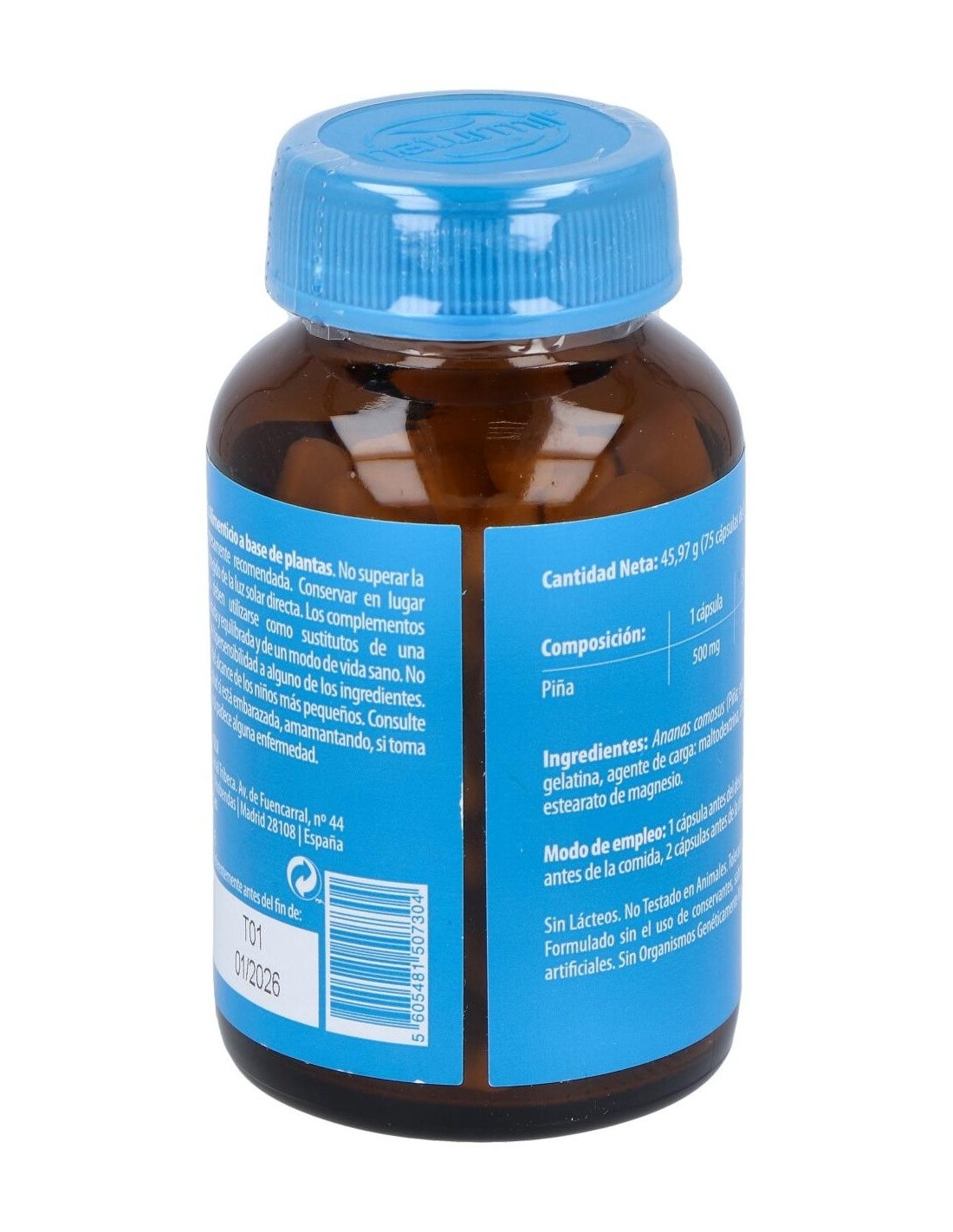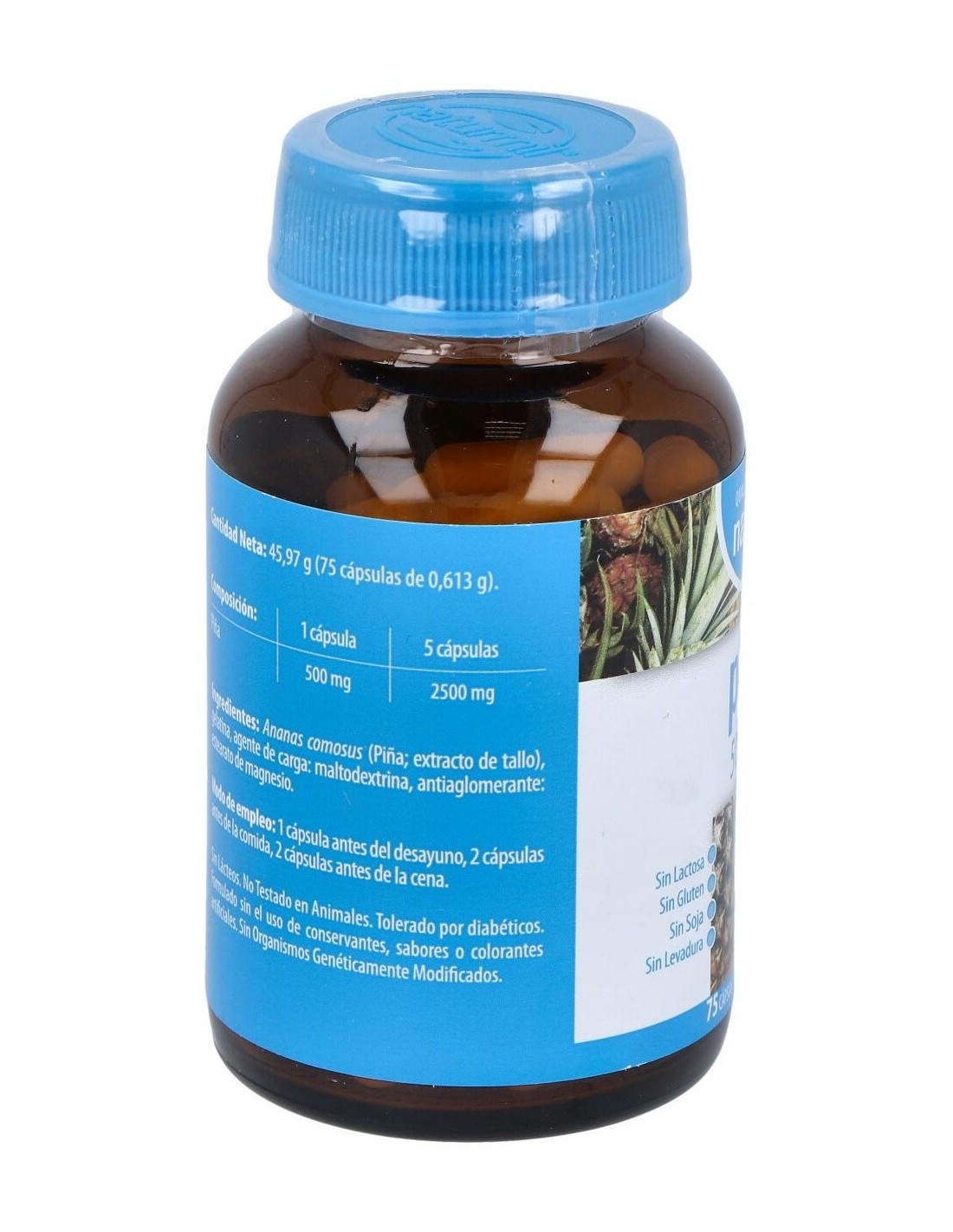 El producto está elaborado con extracto de piña de calidad, cuidadosamente procesado para mantener sus propiedades naturales. Su diseño en cápsulas favorece la dosificación precisa y la incorporación sencilla en la rutina diaria.
