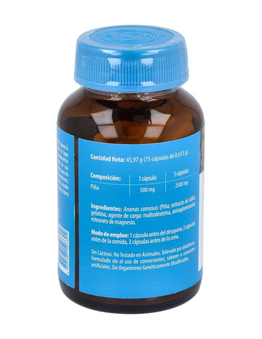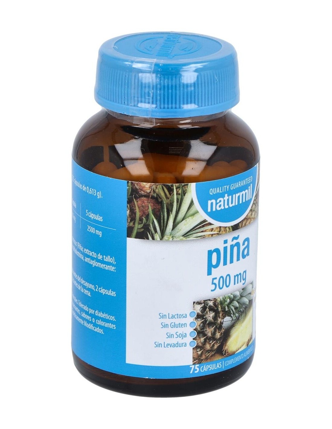 - Cada cápsula contiene 500 mg de extracto de piña, facilitando una ingesta controlada y constante.
