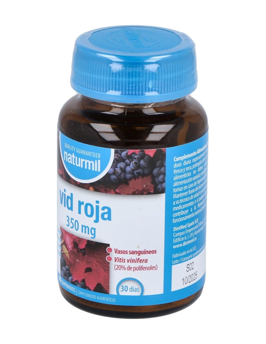 Elaborado con ingredientes seleccionados, Vid Roja 350Mg. 60Comp. de Dietmed combina extractos naturales en una presentación cómoda para su ingesta diaria. Su diseño en comprimidos facilita la incorporación en cualquier rutina, adaptándose a diferentes estilos de vida.