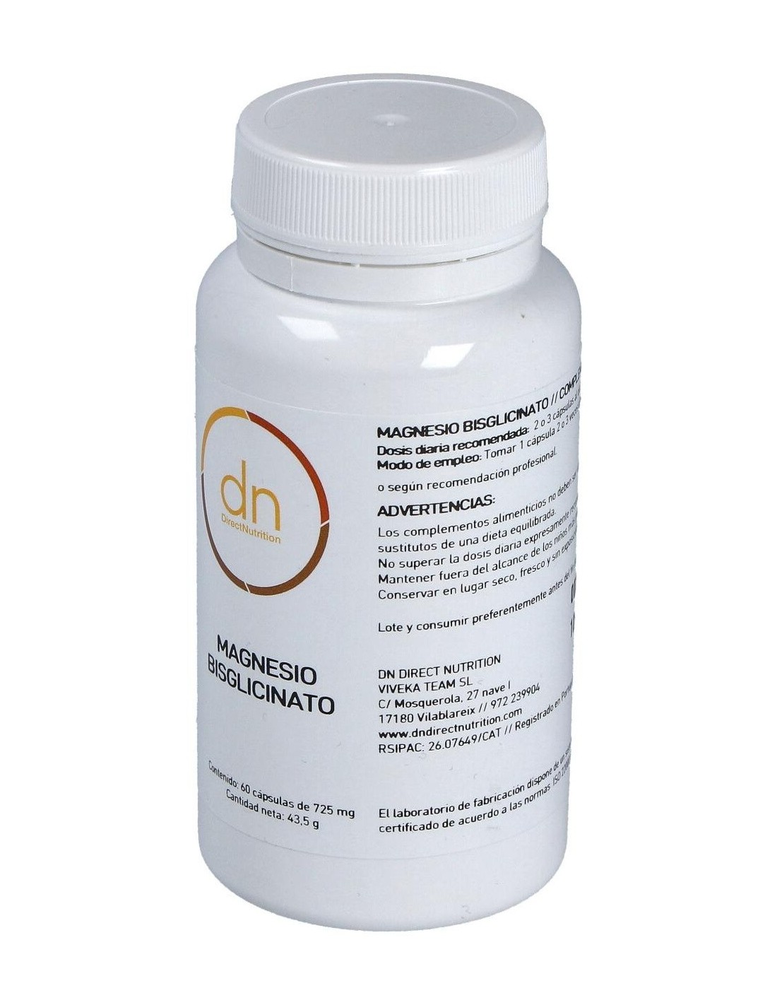 DIRECT NUTRITIONEl magnesio bisglicinado es la mejor forma de aportar magnesio de forma natural al cuerpo. Ayuda a disminuir el cansancio y la fatiga y contribuye al funcionamiento normal de los músculos.