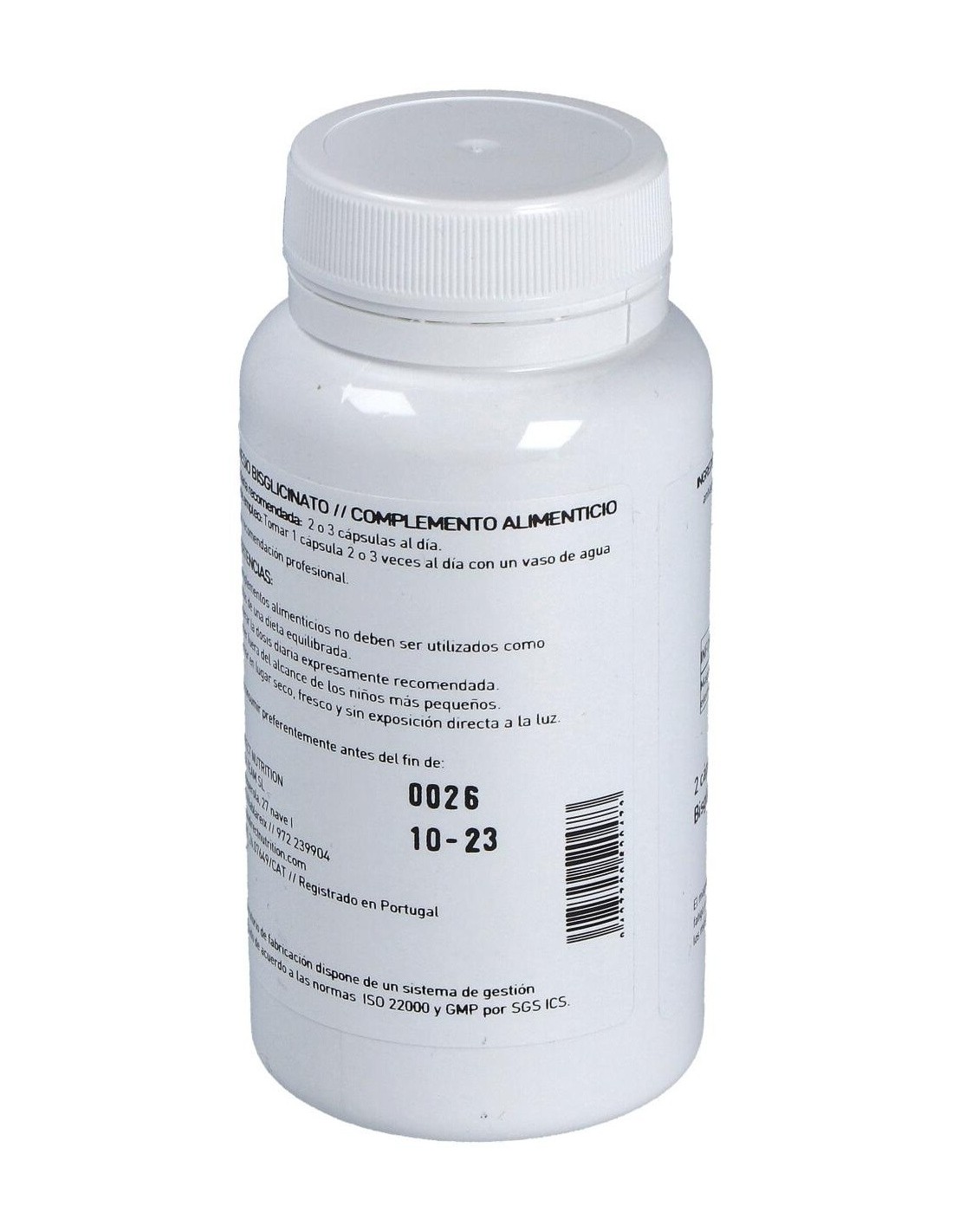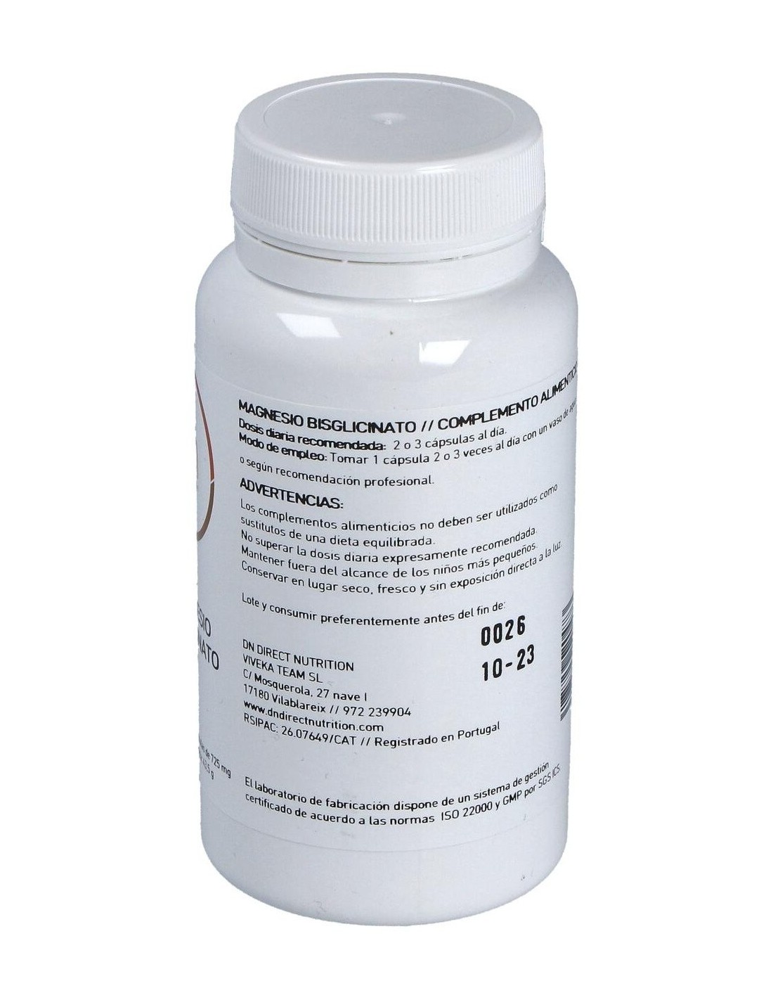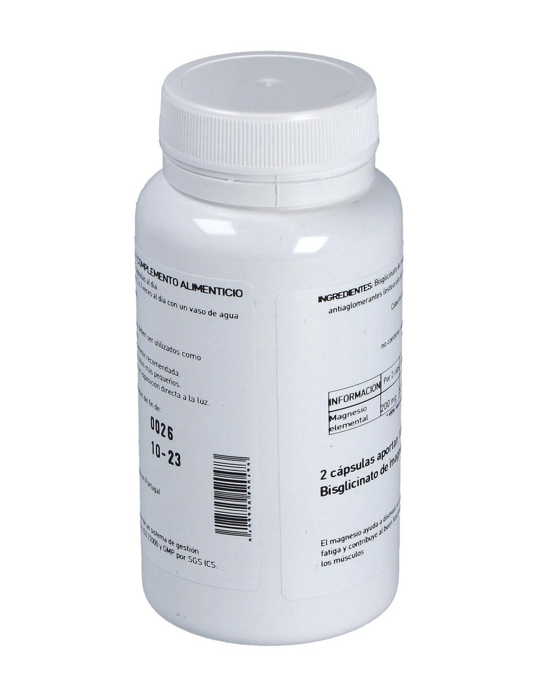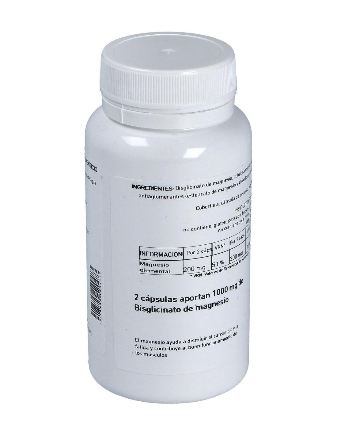100 mg de ión magnesio, Celulosa microcristalina csp, 630 mg Dióxido de silicio 5 mg Antiaglomerante (E-551) Estearato de magnesio 5 mg, Antiaglomerante (E-470b)