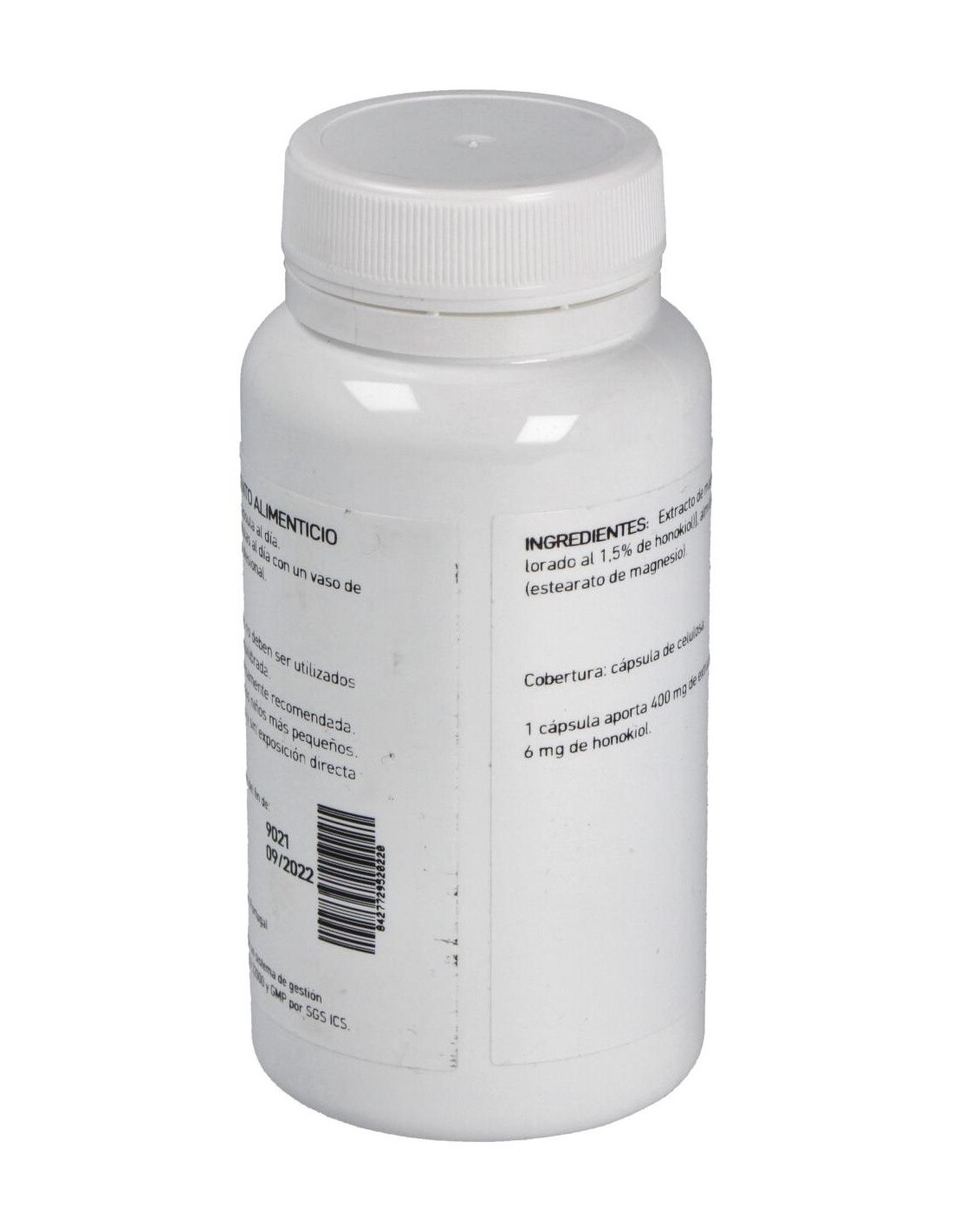 Complemento alimenticio a base de extracto de magnolia. La corteza de la magnolia (Magnolia officinalis) es de composición compleja y muy aromática, los ingredientes activos más destacados son el Magnolol y el Honokiol, dos compuestos polifenólicos que son responsables en gran parte de algunas de las propiedades que se le atribuyen, como por ejemplo la ansiolítica.