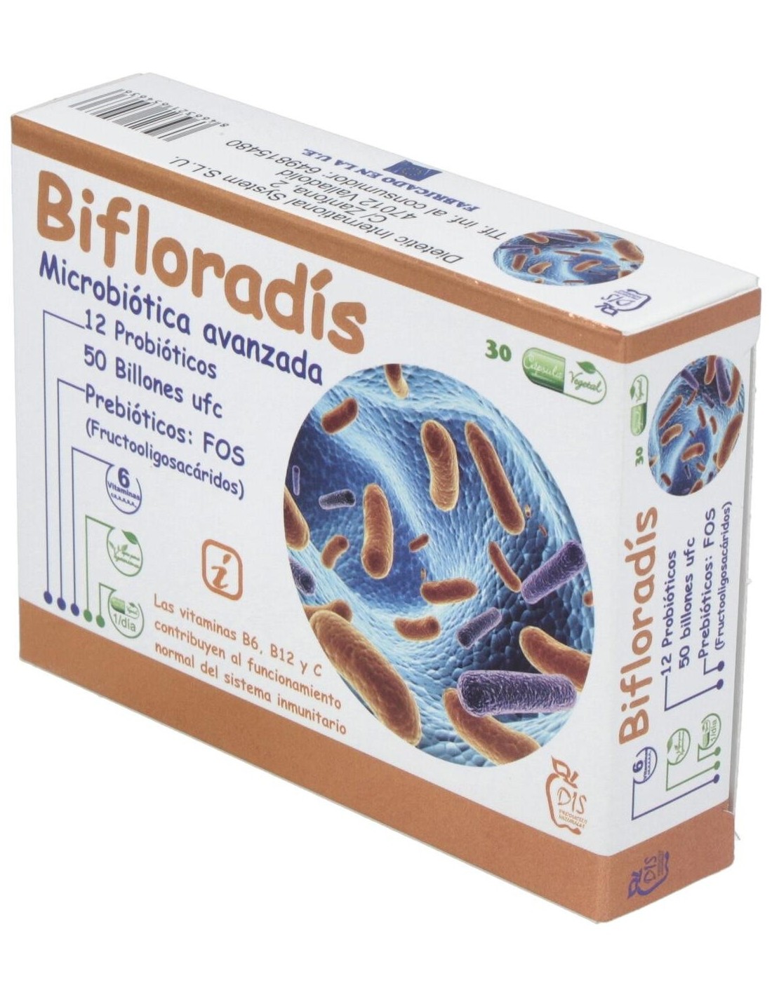 DISEl Bifloradis 30Cap. de Dis es un suplemento probiótico diseñado para personas que buscan apoyar su salud digestiva, ofreciendo equilibrio intestinal mediante una fórmula con cepas bacterianas seleccionadas.