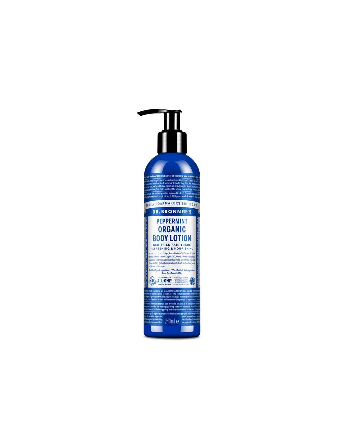 DR BRONNERSLa Loción Corporal Menta de Dr Bronners es una hidratante para pieles frescas, ideal para quienes buscan una sensación refrescante y natural, gracias a su fórmula con aceite esencial de menta.