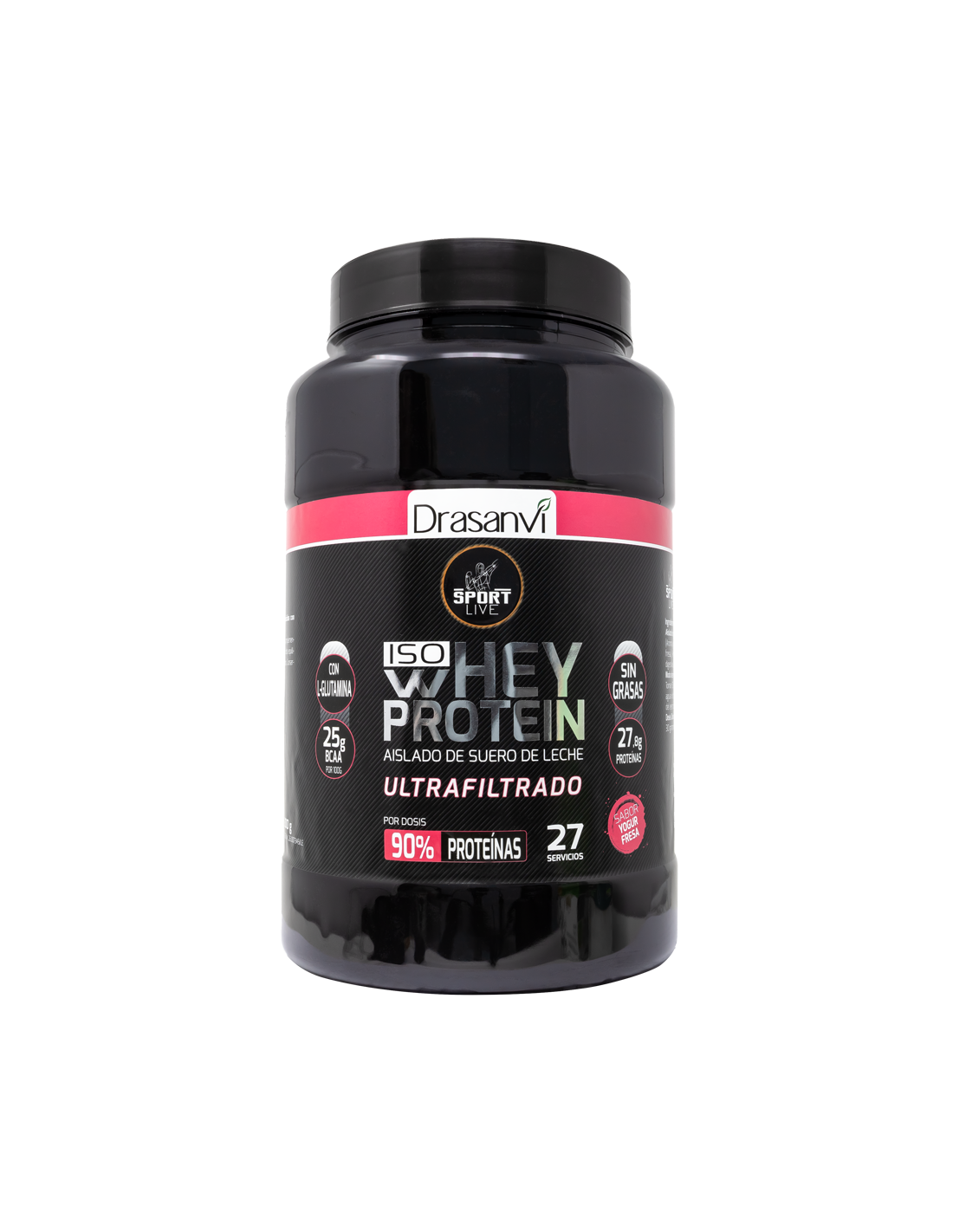 DRASANVI SPORT LIVEWhey Protein con sabor yogur fresa es un complemento alimenticio a base de proteínas de alta pureza. Esta fuente proteica proviene de aislado de suero de leche obtenido por microfiltración y ultrafiltrado. La calidad de la proteína permite obtener un producto de alta concentración en proteínas (próximo al 90%), extremadamente bajo en hidratos de carbono y libre de grasas. Su alta pureza aporta gran cantidad de aminoácidos ramificados, presentes naturalmente en la proteína, así como otros aminoácidos esenciales y minerales como el calcio y el fósforo. Con el fin de mejorar la calidad del producto, se han añadido aminoácidos como la Glutamina y la Leucina, y enzimas digestivas que ayudan a asimilar las proteínas.