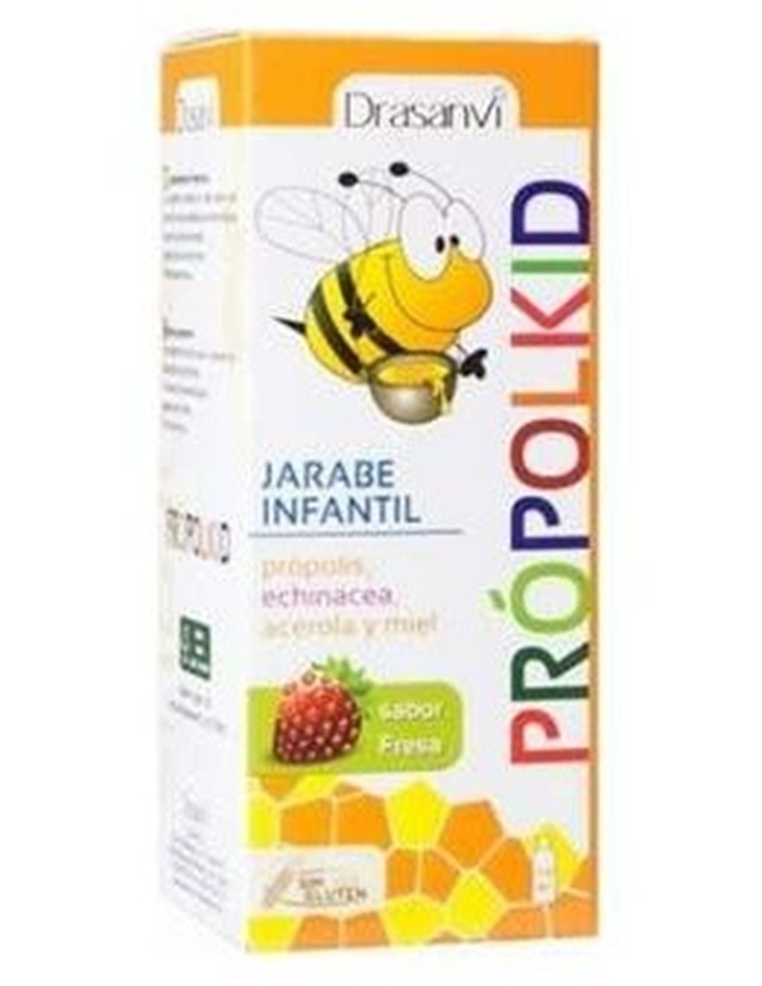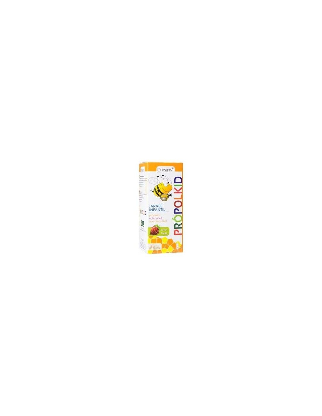 DRASANVIPropolkid es un complemento alimenticio pensado para niños mayores de tres años. En su composición se ha utilizado el propolis, la equinacea, la acero