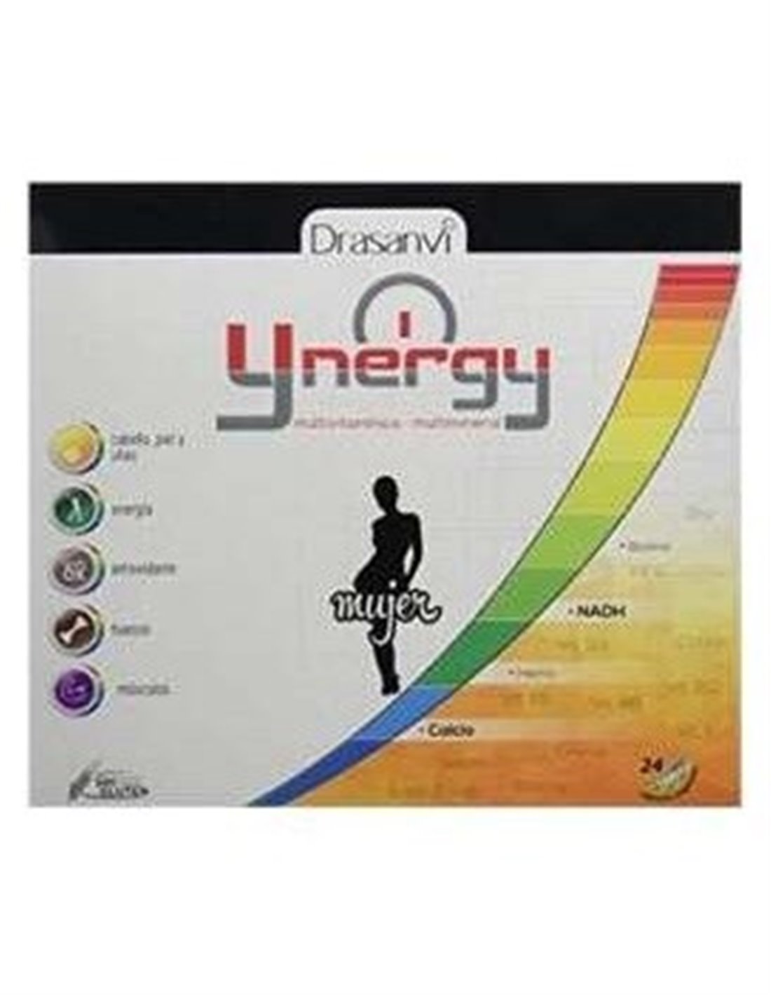 Drasanvi Ynergy Mujer 24 Cáps es complemento multivitamínico y multimineral formulado especialmente para mujeres. Su excelente combinación de 21 vitaminas y minerales se ha enriquecido con NADH un cofactor del metabolismo que está implicado en multitud de procesos del organismo y destaca por su obtención de energía
