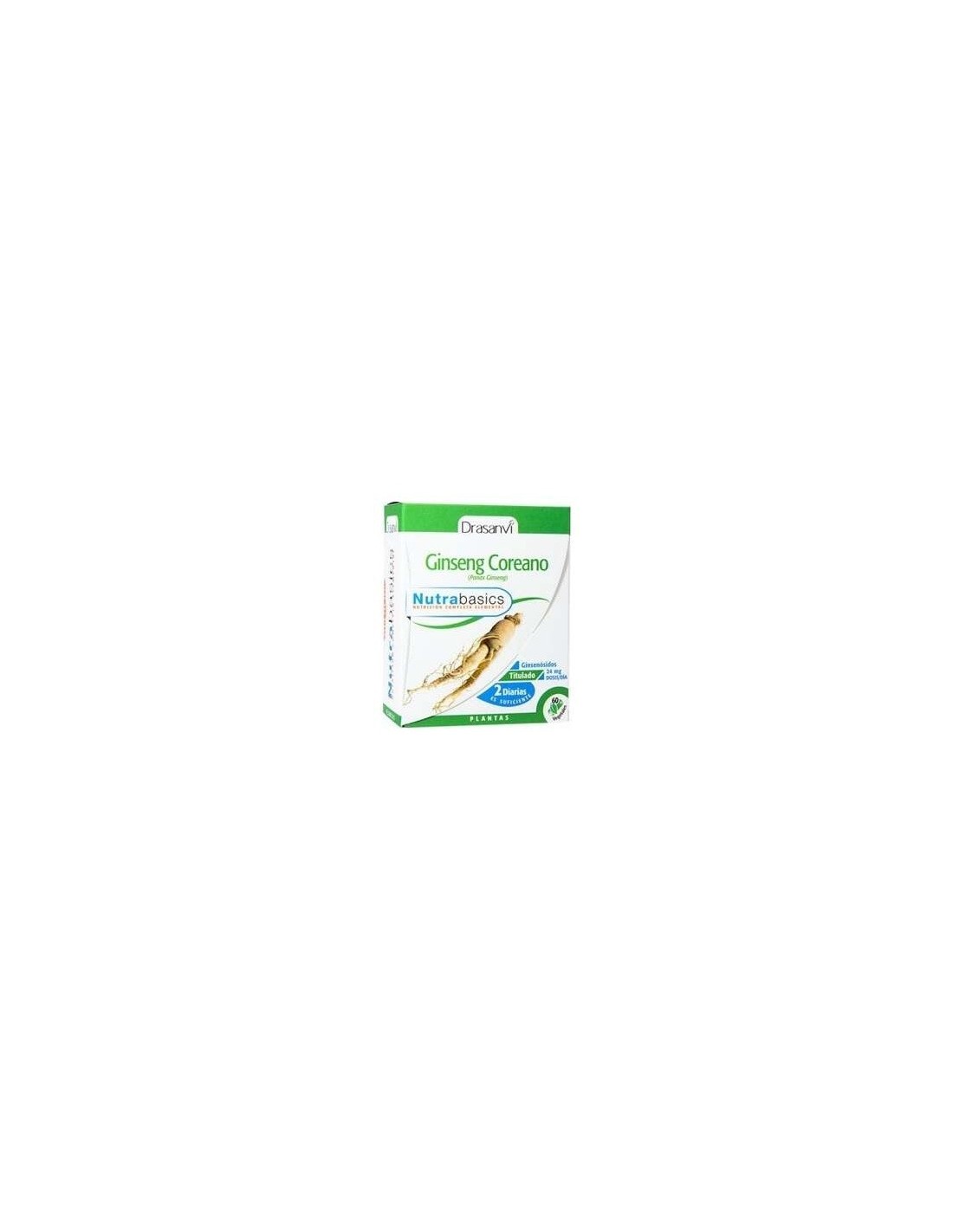 El ginseng coreano es una planta, de la cual es aprovechada la raíz. Las raíces, necesitan más años de crecimiento; tiempo que le permiten concentrarse en mayor cantidad de principio activo. El ginseng coreano, ayuda a mantener la energía, la vitalidad y el bienestar mental. La raíz de ginseng, una vez alcanzado la madurez óptima para la recolección (que puede transcurrir varios años), es arrancada y se elimina los restos de tierra. Posteriormente se calienta para retirar los tegumentos y proceder a la extracción de principios activos. Composición por dosis diaria recomendada (2 cápsulas):600 mg de extracto seco 3:1 de ginseng coreano (24 mg ginsenósidos). Modo de empleo:Tomar 2 cápsulas al día antes de las principales comidas. Presentación:Envase de 60 cápsulas.
