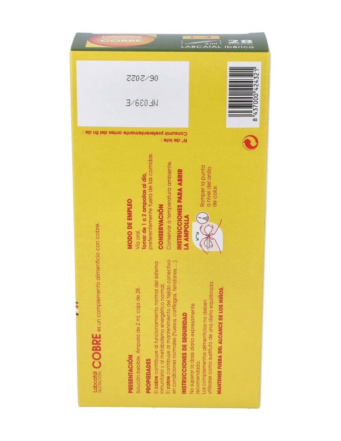 Ingredientes por ampolla:5,179 mg de gluconato de cobre (correspondiente a 0,7252 mg de cobre metal).Modo de empleo: