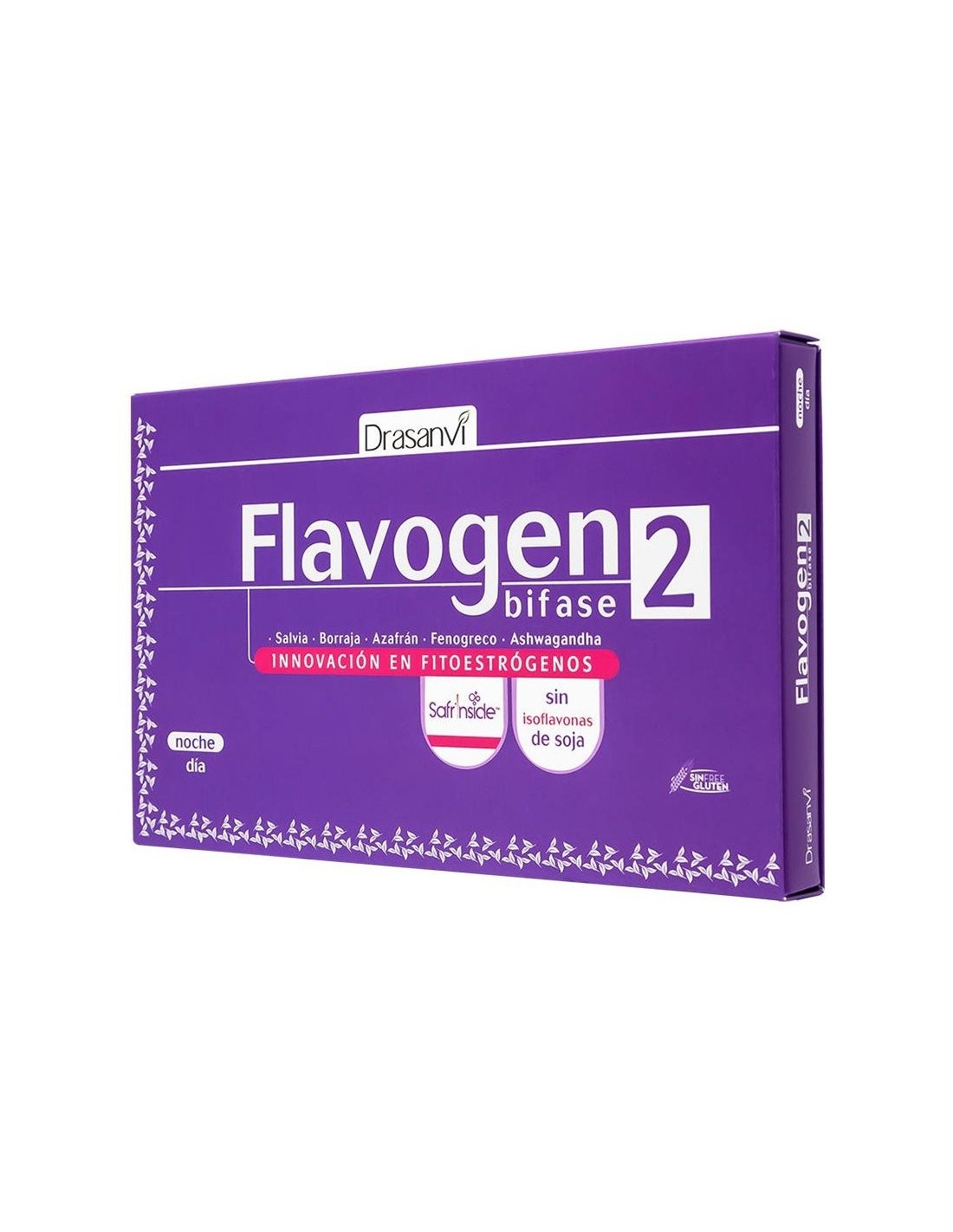 DRASANVIEl consumo de Flavogen Fase II, es recomendable tras 3-4 meses de consumo de Flavogen Bifase o cuando este deje de hacer efecto en el organismo. Flavogen Bifase II, al igual que su predecesor se trata de dos productos en uno, las cápsulas de día presentan en su composicion Azafrán, un extracto con estudios, que combina con la acción fitoestrogénica de la Salvia, para ayudar al confort de la menopausia. Por otra parte, las cápsulas de noche aportan unos nuevos fitoestrogenos, que provienen del fenogreco (también conocido como alholva) y amapola californiana que ayuda a conciliar el sueño.