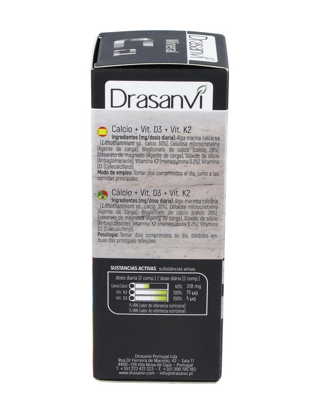 DRASANVICalcio con Vitamina D3 + K2 de Drasanvi contiene tres de los ingredientes básicos para el mantenimiento de los huesos en condiciones normales. El calc
