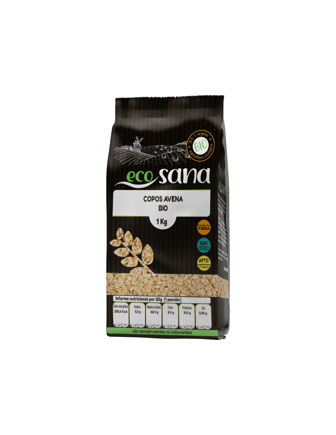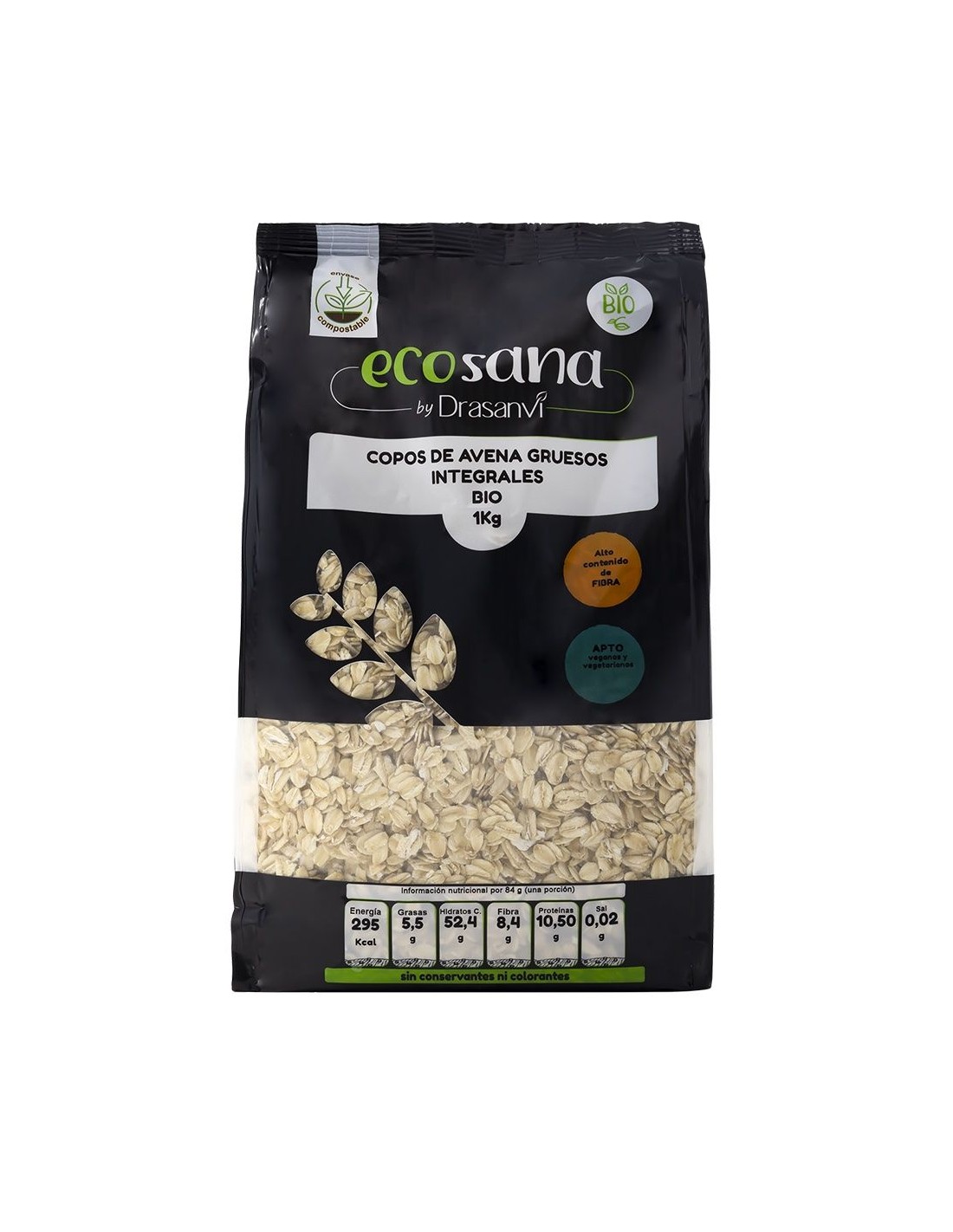 ECOSANA DRASANVICopos de Avena Gruesos Integrales Bio de Ecosana proporcionan mucha energía, por lo que es muy recomendado para deportistas y estudiantes. Contiene hi