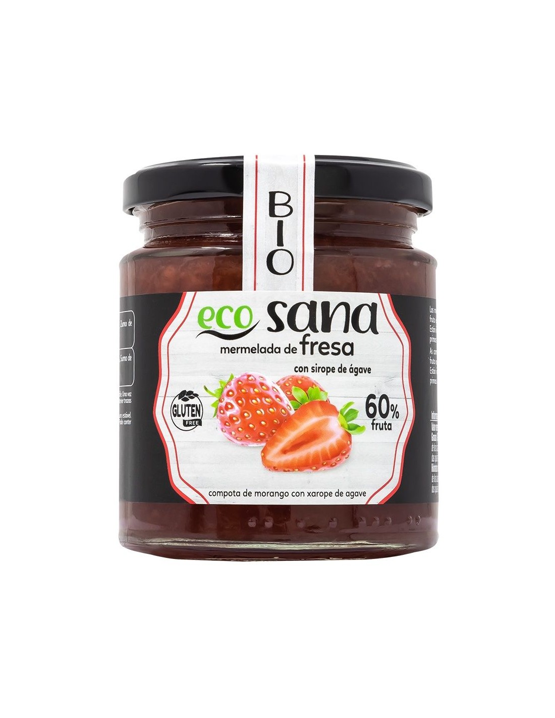 Ingredientes:Fresas* (60%), Sirope de ágave*, Pectina de frutas, Zumo de limón*. (*) Procedente de agricultura ecológica.Valor nutricional por 100 gramos: