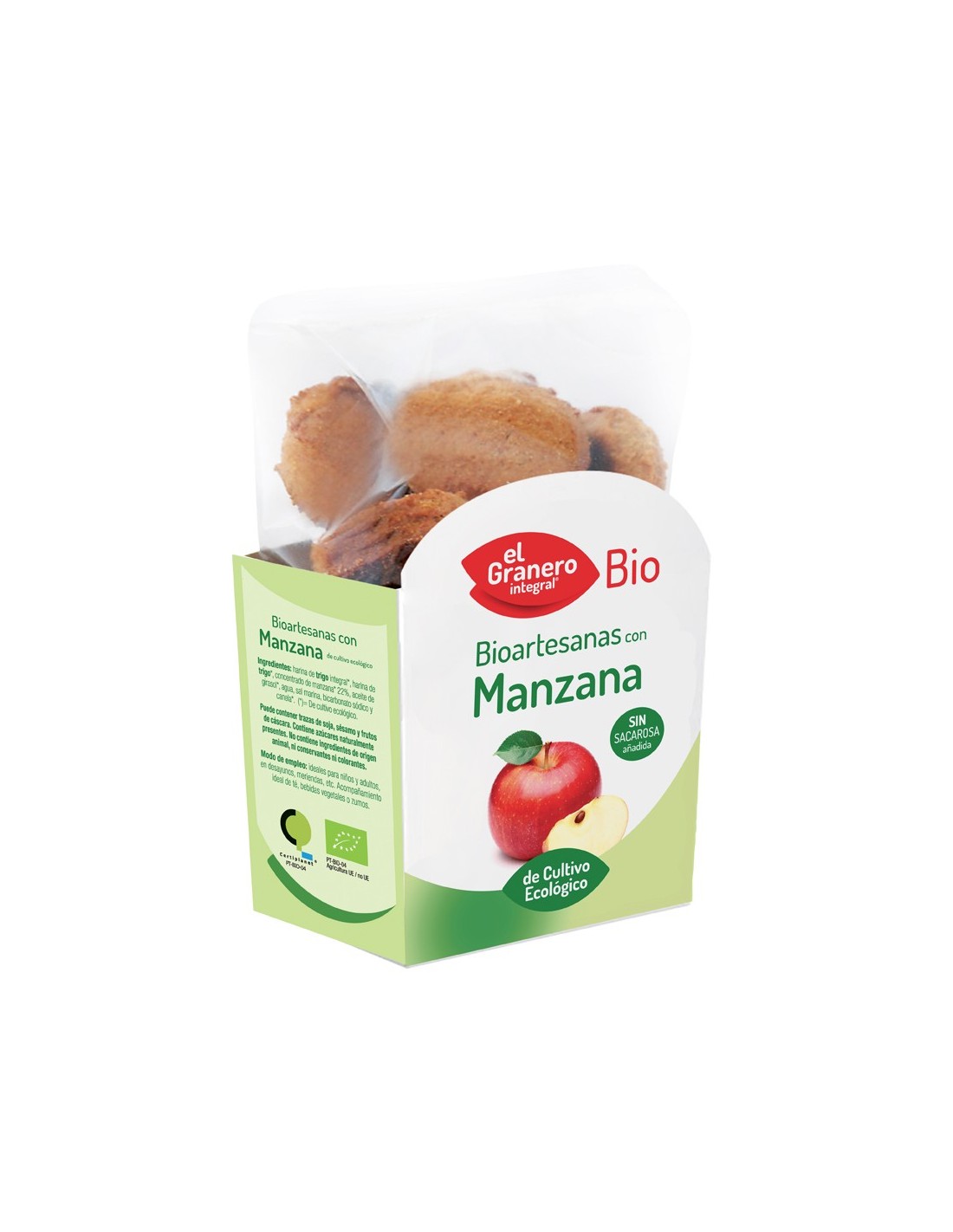 - Ingredientes 100% orgánicos: Manzana bio, harina integral y otros componentes naturales que garantizan un producto libre de pesticidas y aditivos químicos.