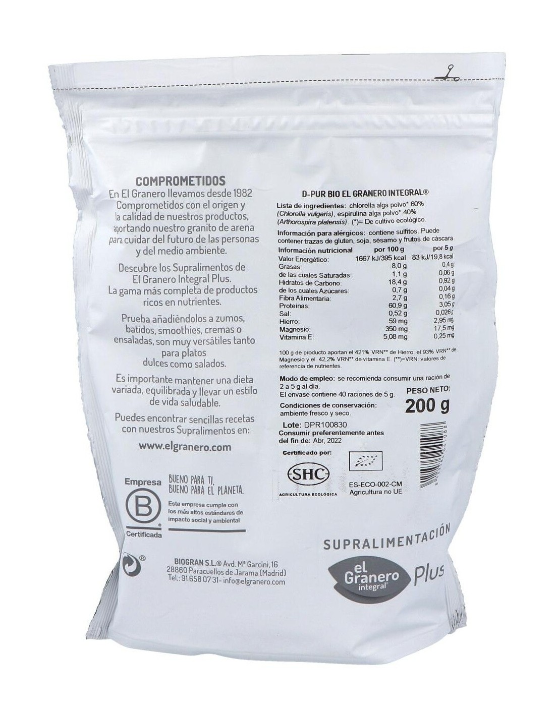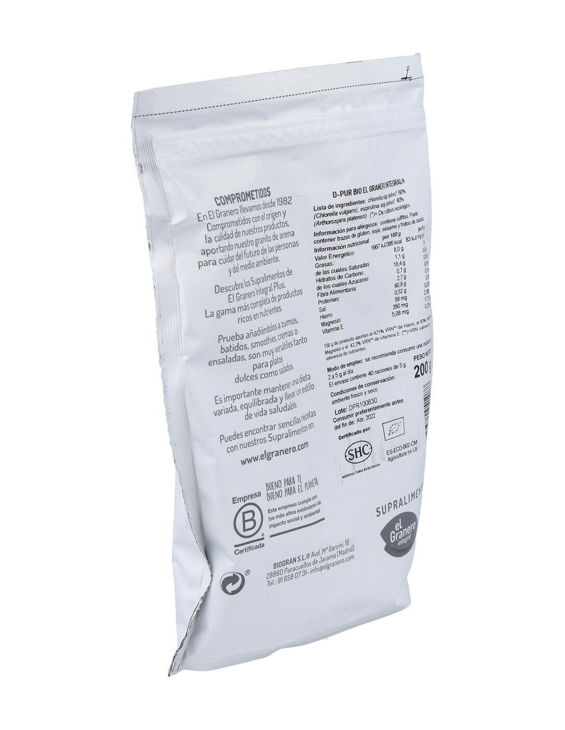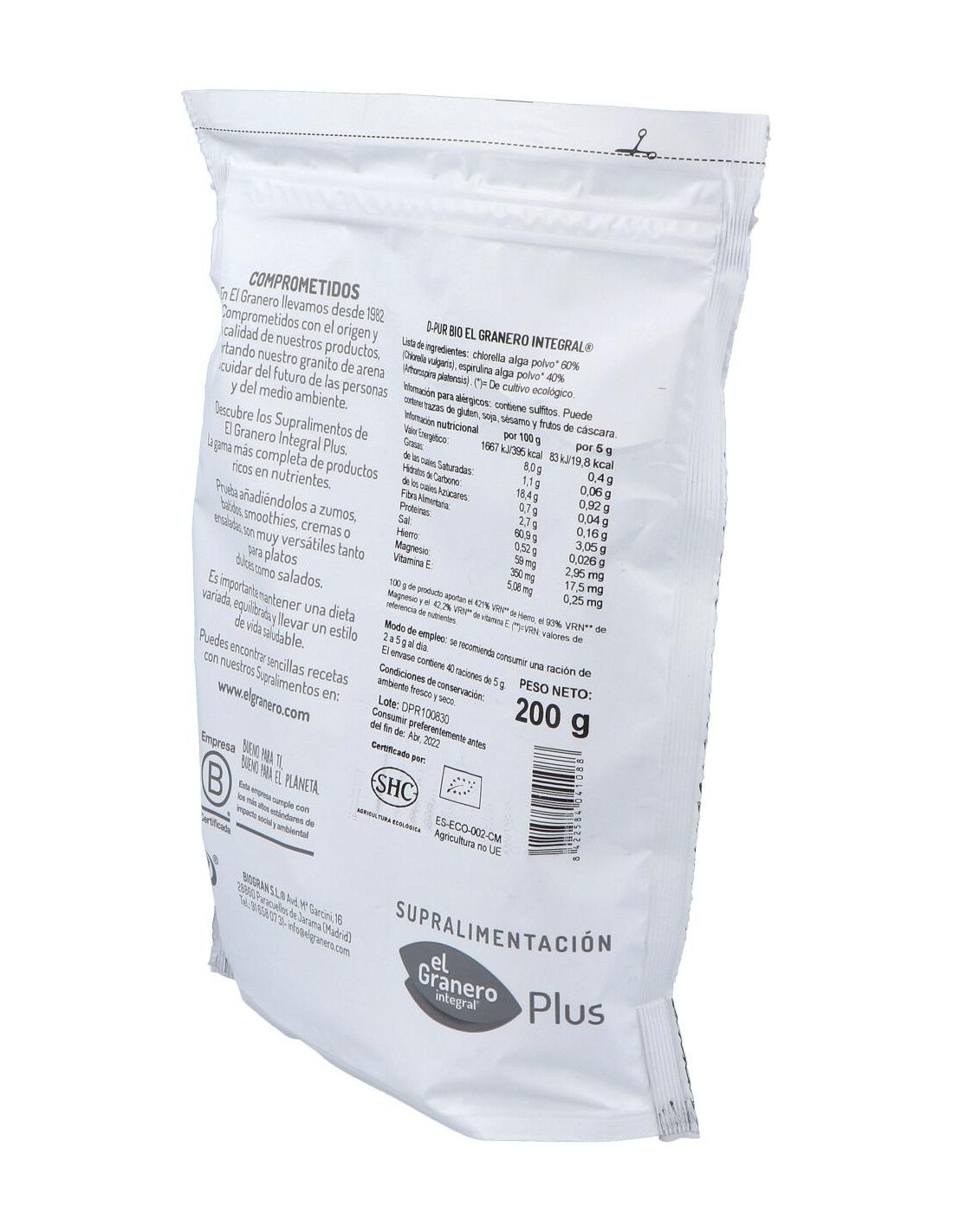 EL GRANERO INTEGRALLa chlorella y la spirulina se integran perfectamente en un régimen alimenticio equilibrado y están recomendadas especialmente para las personas que h