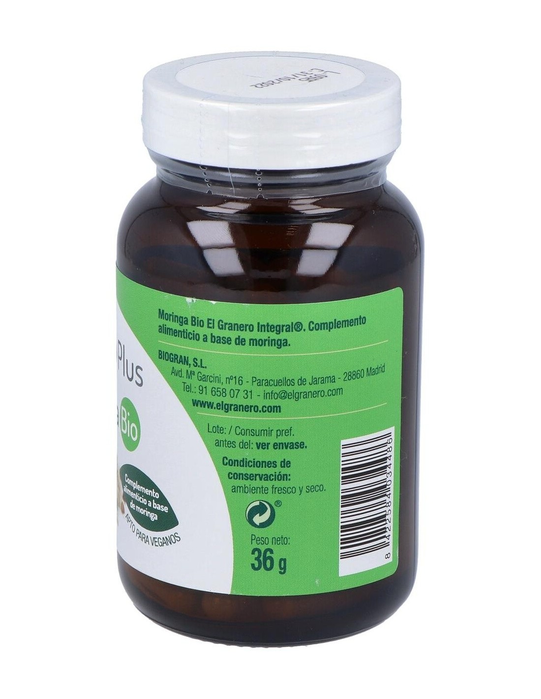 EL GRANERO INTEGRAL"DescripciónEl Granero Moringa Bio 400Mg 90cap es un complemento alimenticio en forma de cápsulas que tienen la capacidad de suplir casi por completo los requerimientos de micronutrientes necesarios para llevar una dieta saludable, lo que lo convierte en un complemento para aquellas personas que quieren asegurar sus niveles de micronutrientes. Su fórmula, además de presentar los aminoácidos esenciales, contienen gran variedad de vitaminas (A, C) y minerales (calcio, potasio, hierro , magnesio.
