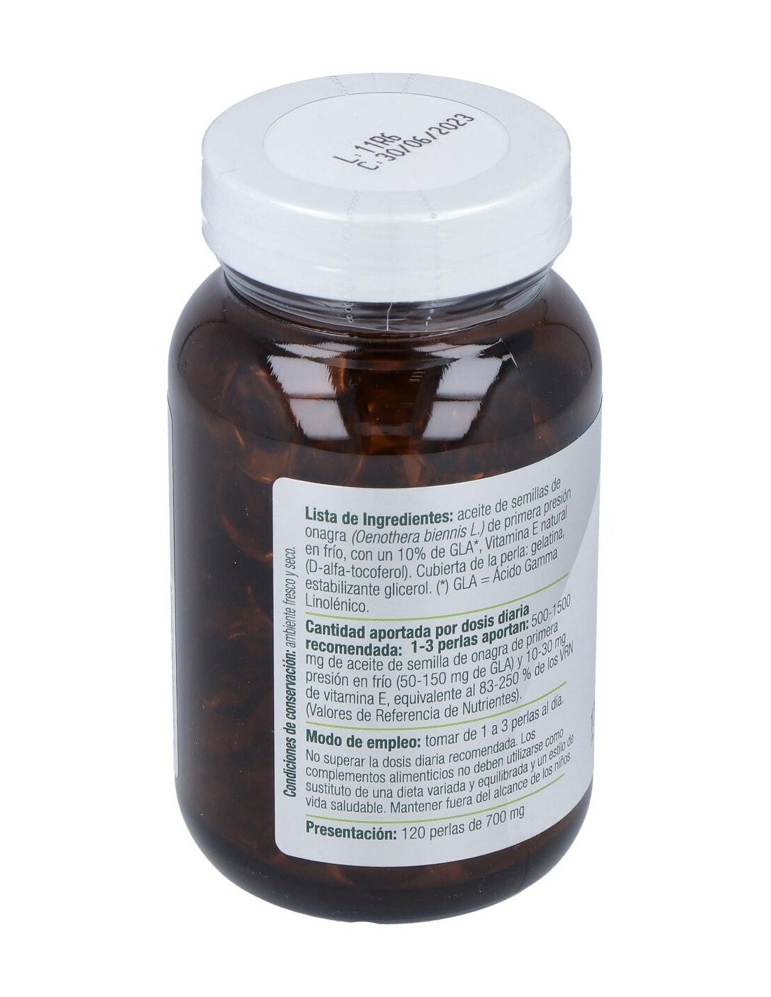 - Cada perla contiene aceite de onagra, fuente natural de ácidos grasos omega-6, que contribuyen al mantenimiento de funciones corporales normales.