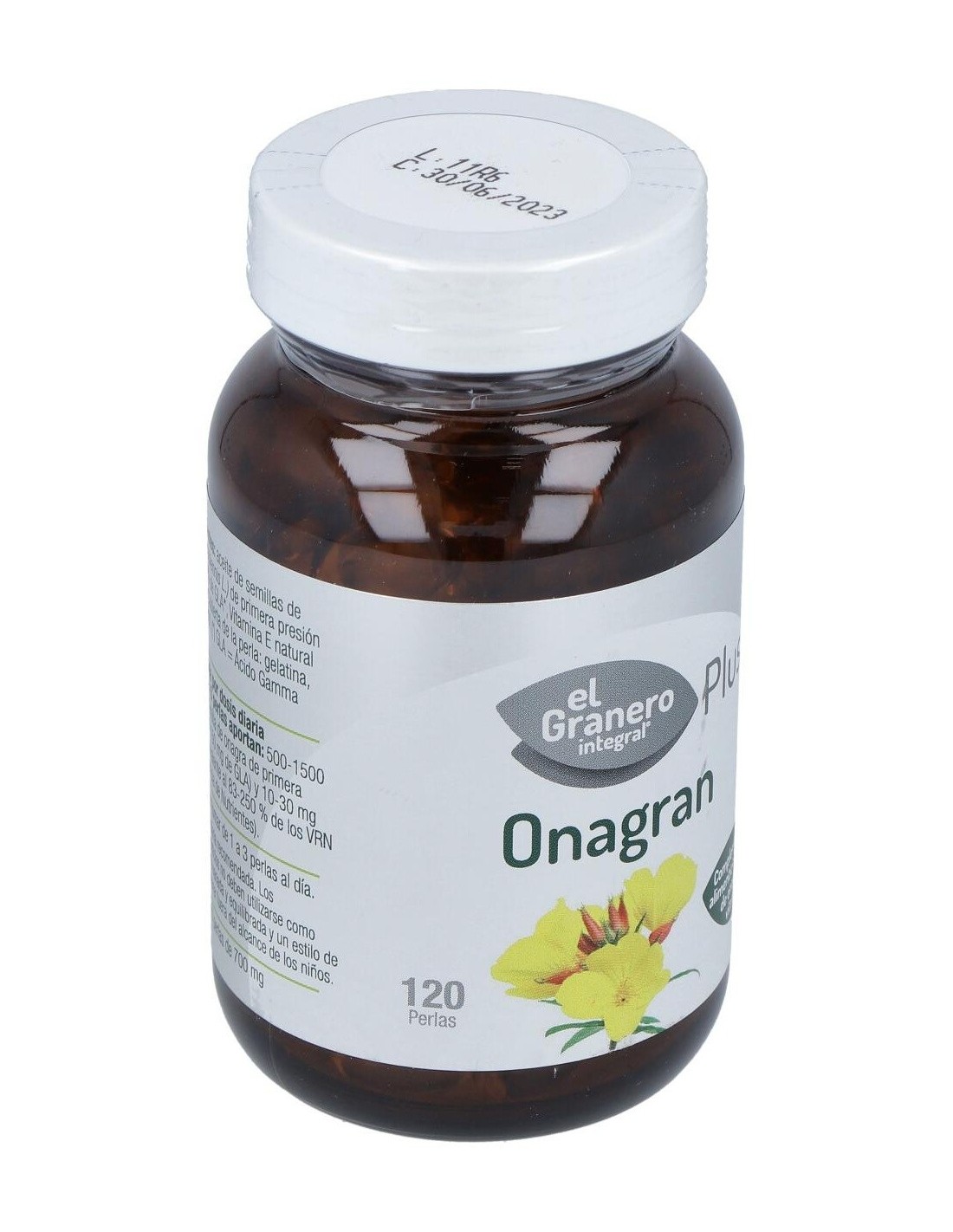 EL GRANERO INTEGRALEl Aceite De Onagra 120Perlas de El Granero es un suplemento natural para personas que buscan apoyar el bienestar hormonal y la salud de la piel, formulado con perlas que facilitan su dosificación y consumo diario.