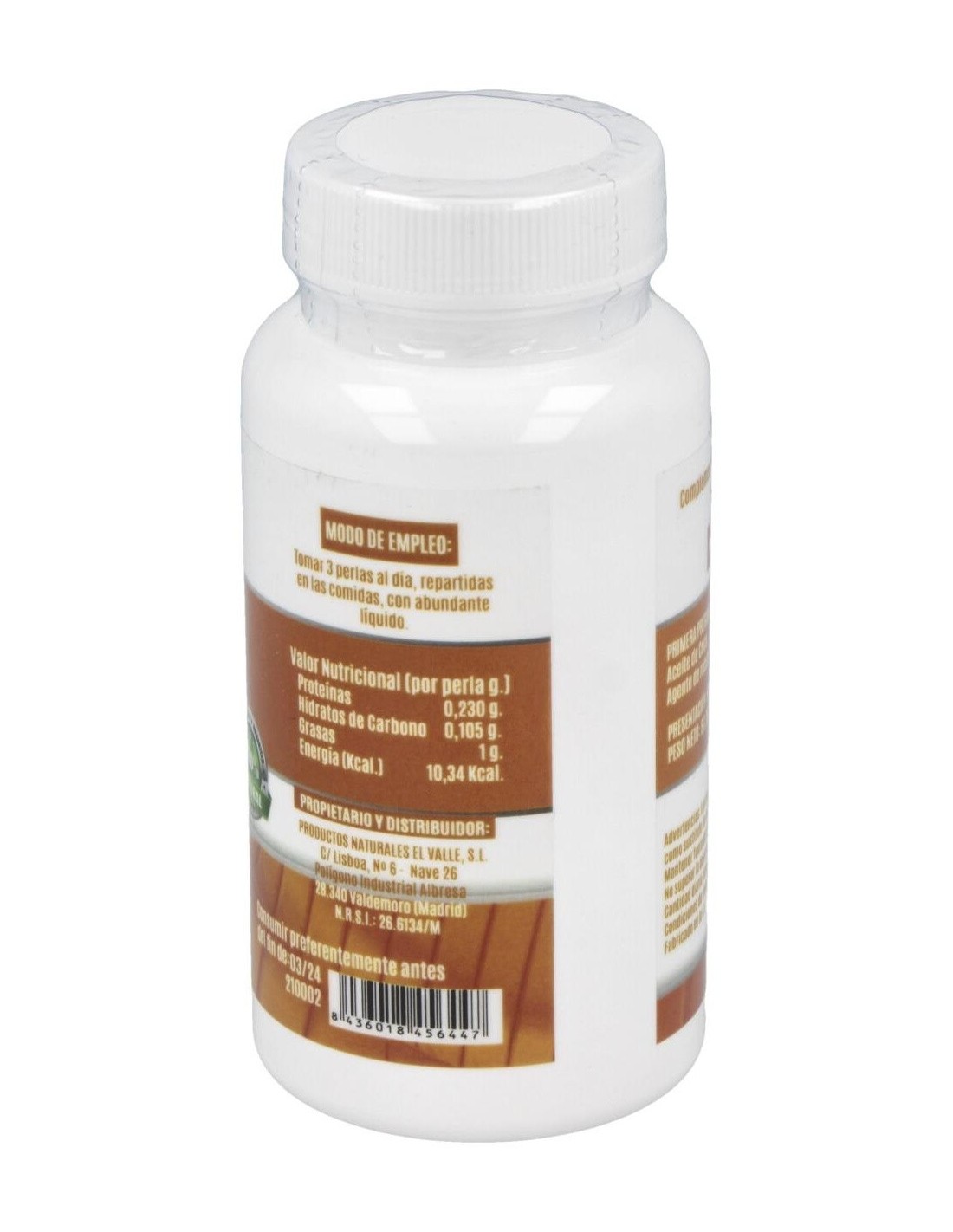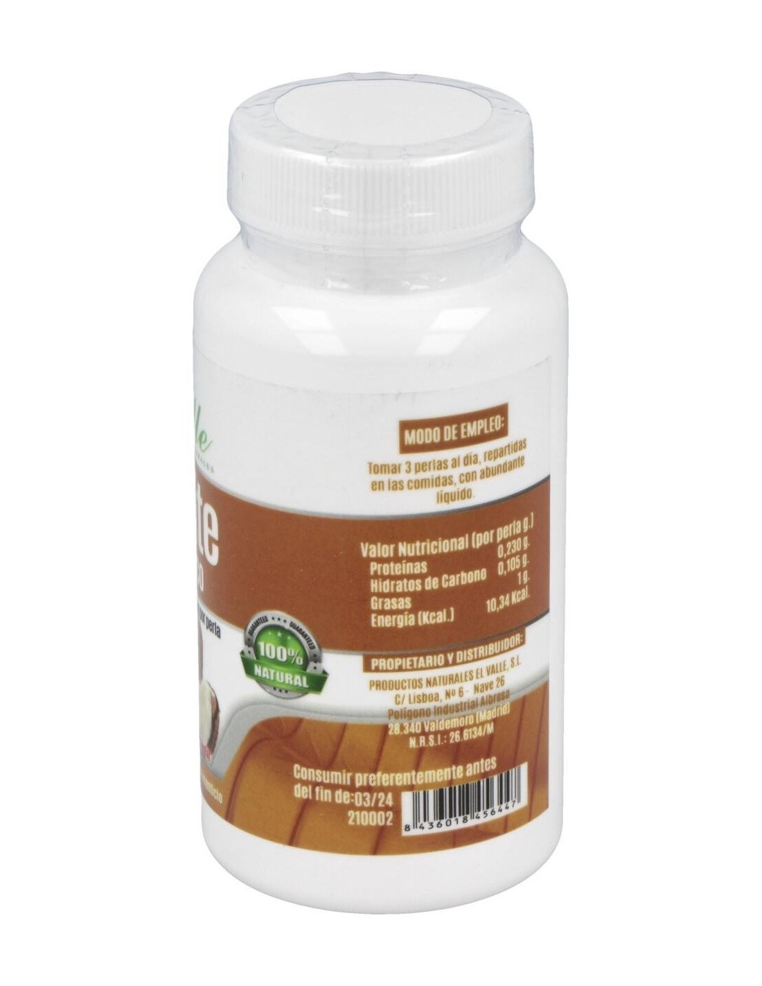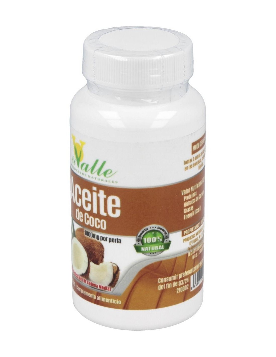 EL VALLEComplemento alimenticio en forma de perlas blandas, elaborado a base de aceite de coco, que aporta diversos beneficios sobre el organismo. Tiene un efecto termogénico, que favorece el aumento del metabolismo energético.