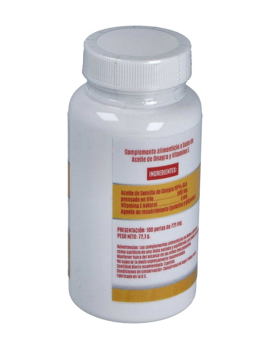 Complemento alimenticio en formato de perla, que gracias a su contenido en aceite de onagra contribuye a aliviar los síntomas de menstruaciones irregulares y dolorosas, menopausia, artritis y reuma, fibrosis quística y alergias. Contribuye a mejorar el aspecto en pieles resecas y escamosas.