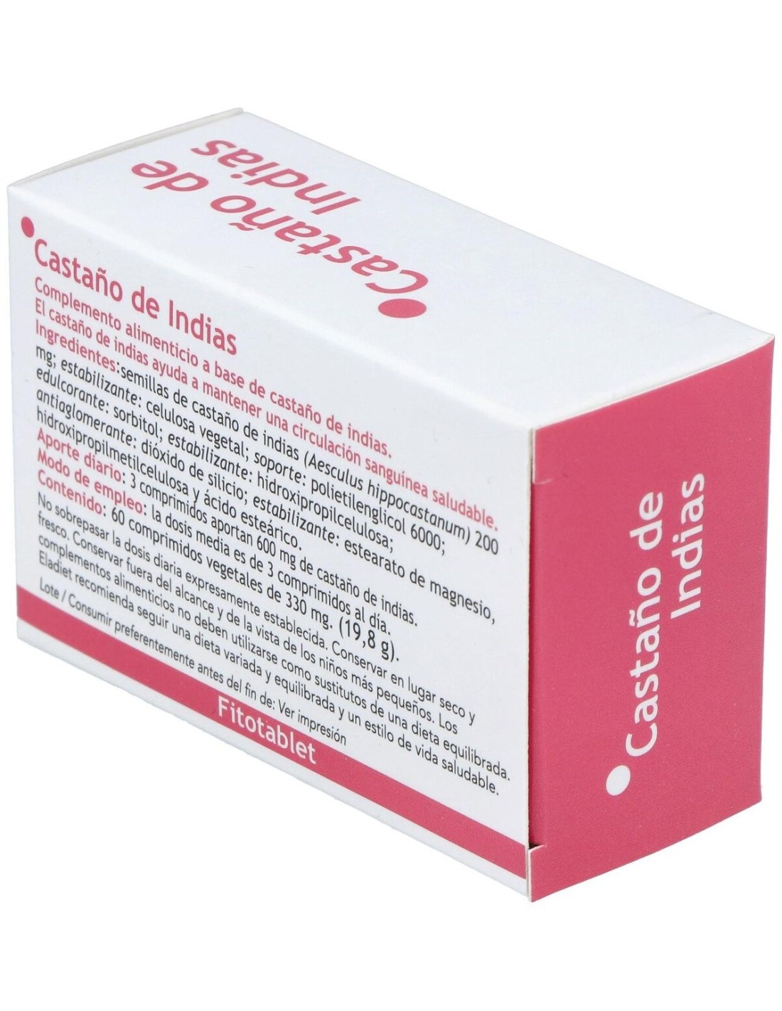 Fitotablet castaño de indias es un complemento alimenticio que mejora la circulación sanguínea evitando la sensación de piernas cansadas. Su principal ingrediente, el castaño de indias, posee propiedades vasoconstrictoras e antiinflamatorias que permite aumentar la resistencia de los capilares sanguíneos aliviando las varices u otros problemas de mala circulación periférica.