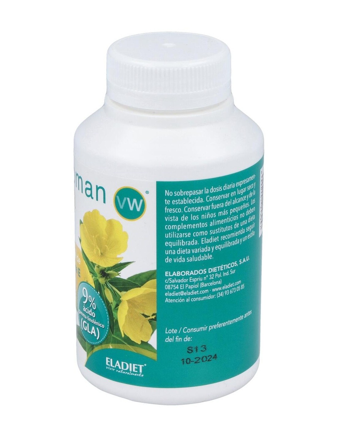 ELADIETSuplemento a base de aceite de onagra y vitamina E obtenido de su primera presión en frío. Aporta GLA.