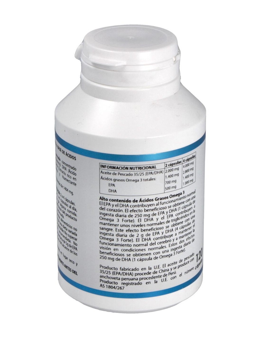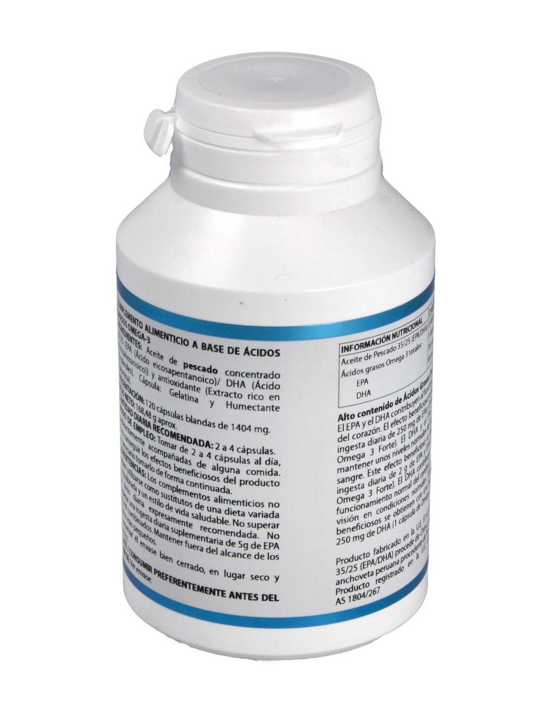 Se recomienda suplementación de DHA durante la gestación y lactancia; prematuros; enfermedades neurodegenerativas; alteraciones de fertilidad masculina y alteraciones de comportamiento. Composición por perla:1.000 mg de aceite de pescado concentrado (350 mg EPA y 250 mg DHA). Modo de empleo:Tomar de 2 a 3 perlas al día, preferentemente acompañadas de alguna comida. Presentación:Bote de 120 perlas.
