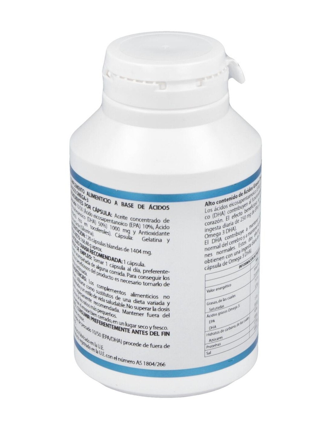Se recomienda suplementación de DHA durante la gestación y lactancia; prematuros; enfermedades neurodegenerativas; alteraciones de fertilidad masculina y alteraciones de comportamiento. Composición por perla:1.000 mg de aceite de pescado concentrado (100 mg EPA y 500 mg DHA). Modo de empleo:Tomar 1 perla la día, preferentemente acompañada de una comida. Presentación:Bote de 120 perlas.