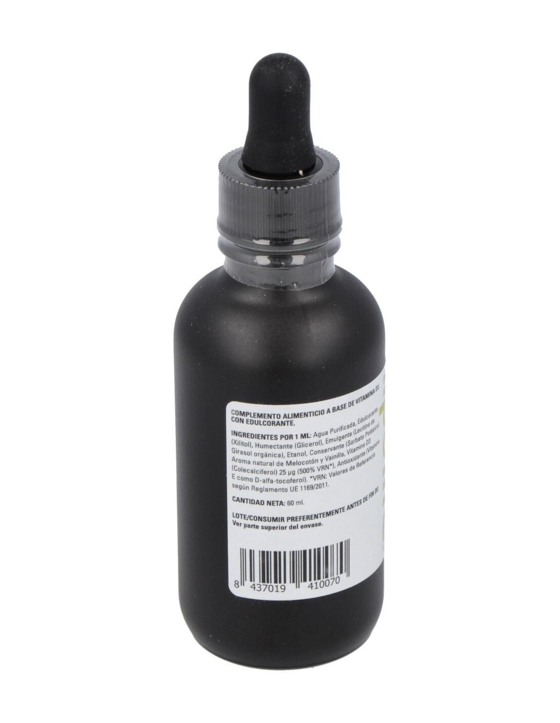 Agua purificada, edulcorante (xilitol), humectante (glicerol), emulgente (lecitina de girasol orgánica), etanol, conservante (sorbato potásico), aroma natural de melocotón y vainilla, vitamina D3 (colecalciferol), antioxidante (vitamina E como D-alfa-tocoferol).