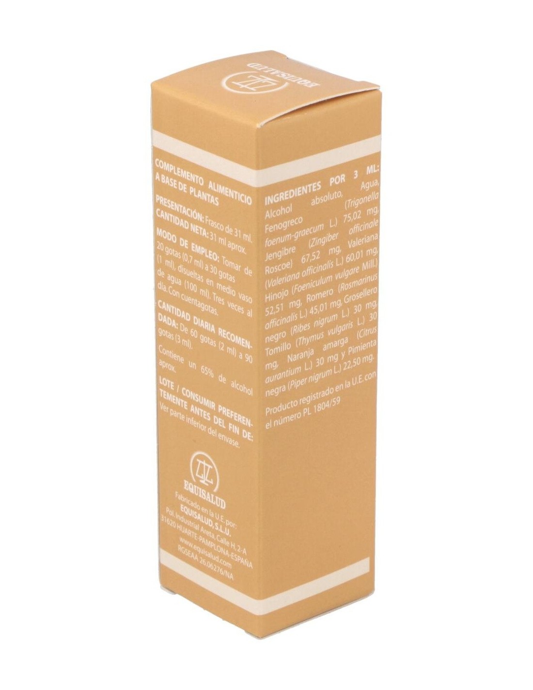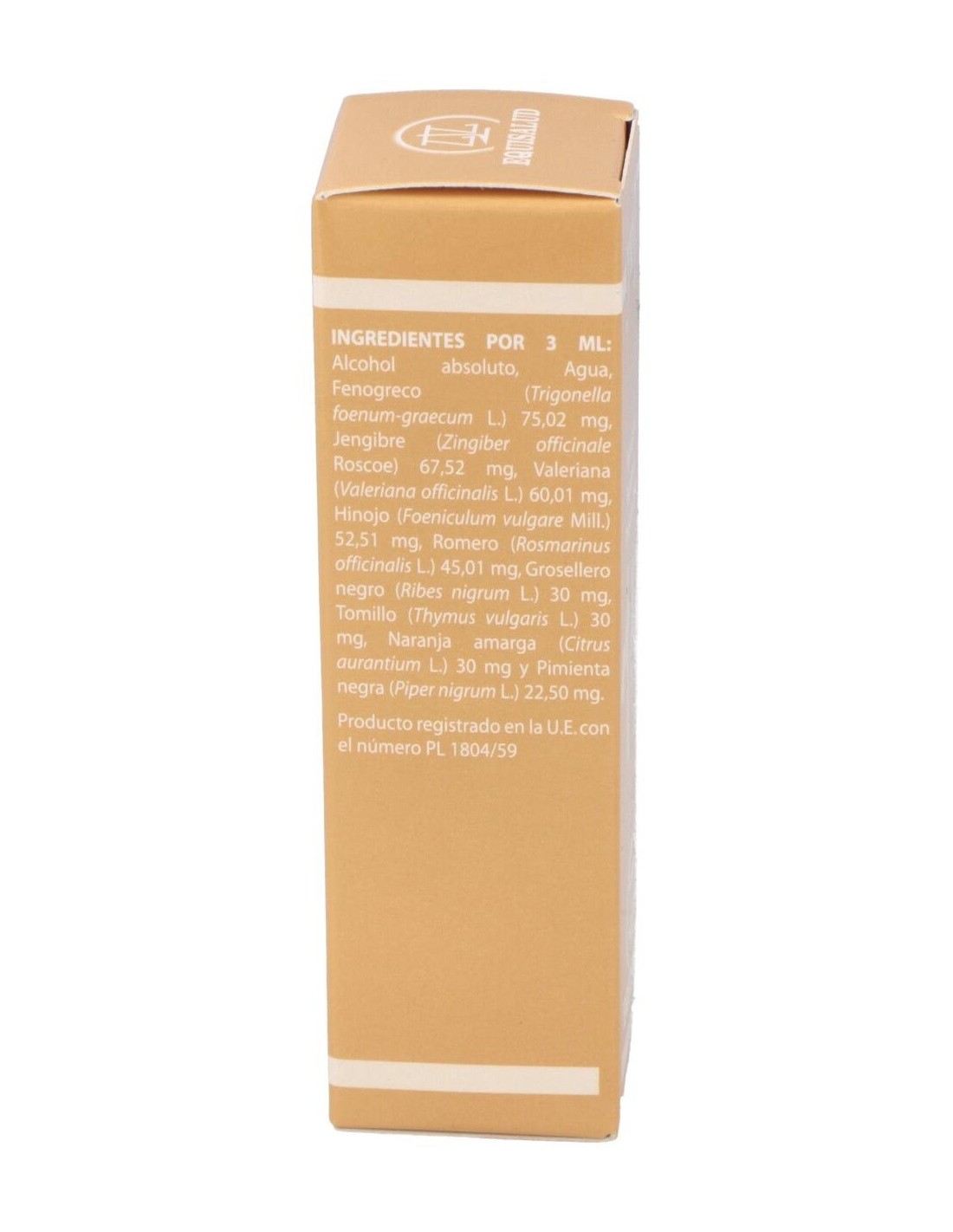 El síndrome de Bi es un síndrome doloroso donde la persona tiene dolor en algún lugar del cuerpo, principalmente en los músculos, tendones y articulaciones. Suele ser unilateral y con limitación en el movimiento. Generalmente esta relacionado con la esfera traumatológica. Este síndrome puede estar relacionado con otros y que suelen ser la base. La energía perversa principal es el frío que congela y debilita el Yang provocando estancamiento de sangre y energía. Puede ser por un ataque de frío externo o por gran debilidad de Yang interno que afecta congela los meridianos. Este estancamiento y la sintomatología se acrecenta con la humedad. Manifestaciones asociadas a este síndrome: Suelen ser dolores muy fuertes, violentos y agudos. En ocasiones se define como el dolor como si fuera una mordedura. Dolor generalmente fijo, con sensación de pesadez entumecimiento e hinchazón si hay humedad. El síndrome doloroso suele localizarse en la zona lumbar y miembros inferiores. Sensación de frío y pesadez, hinchazón de las articulaciones, espasmos, aumenta de noche, con el frío y la humedad; disminuye durante el día, con el calor y el tiempo seco. Problemas para flexionar y extender los miembros ya que causa dolor. Sensación (del propio paciente) de frío en la zona dolorida, aunque al tacto sea normal. Temor al frío y busca el calor, no hay sed. Lengua blanca, pálida, húmeda y deslizante. Pulso apretado o tenso. Además de los síntomas propios de Bi por humedad. Composición:Naranja amarga (Citrus aurantium), Jengibre (Zingiber officinale), Pimienta Negra (Piper nigrum), Hinojo (Foeniculum vulgare), Fenogreco (Trigonella foenum-graecum), Tomillo (Thymus vulgaris), Valeriana (Valeriana officinalis), Romero (Rosmarinus officinalis), Grossellero Negro (Ribes nigrum). Modo de empleo:Tomar de 20 a 30 gotas disueltas en medio vaso de agua, 3 veces al día. Presentación:Frasco de 31 ml.