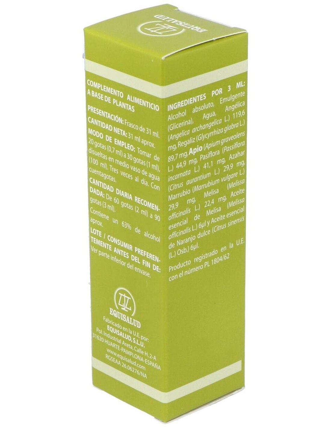 Las patologías mas frecuentes que nos vamos a encontrar son: cefalesas, vértigos, insomnio, epilepsia, epistaxis, irritabilidad, delirios, crisis nerviosas, neurosis, fobias, cambios de humor. Composición:Regaliz (Glycyrrhiza glabra), Angélica(Angelica archangelica), Apio (Apium graveolens), Pasiflora (Passiflora incarnata), Melisa(Melissa officinalis), Marrubio (Marrubium vulgare),Naranja dulce (Citrus sinensis), Azahar (Citrus aurantium). Modo de empleo:Tomar de 20 a 30 gotas disueltas en medio vaso de agua, 3 veces al día. Presentación:Frasco de 31 ml.
