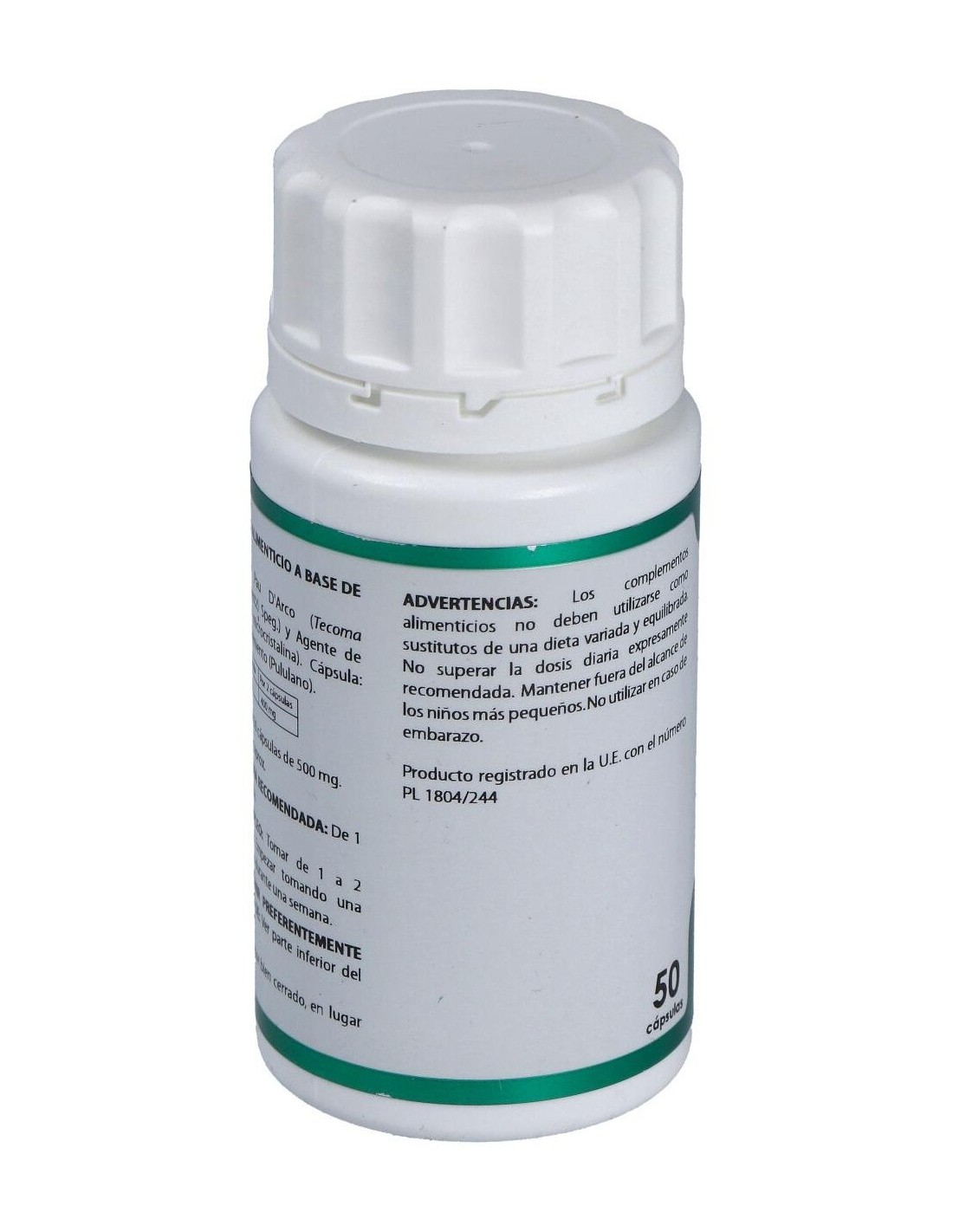 El lapacho cuenta con propiedades astringentes (antidiarreico, cicatrizante), antibacterianas (especialmente Gram+), antifúngicas (mayoritariamente frente a Candida spp) y antiinflamatorias. Los estudios farmacológicos sobre el lapacho se han centralizado básicamente en dos aspectos: antineoplásico y antimicrobiano. A nivel oncológico la reputación como agente antitumoral del lapacho se remonta hace ya varias décadas. Por ahora sólo hay evidencias de algunos efectos inhibitorios in vitro o en modelos animales. En cuanto a la actividad antimicrobiana in vitro, los compuestos que dieron resultados más alentadores han sido las naftoquinonas lapachol y lapachona. La lapachona ha demostrado actividad inhibitoria sobre estafilococos y estreptococos, así como actividad antimalárica y antitripanosómica significativa. En tanto el lapachol demostró actividad antimicrobiana contra Bacillus subtilis, Staphylococcus aureus penicilino-resistentes, Salmonella typhimurium y Candida albicans. Resultaron interesantes también los hallazgos experimentales positivos frente a Leishmania. En cuanto a actividad antiviral, se hallaron resultados inhibitorios sobre el virus de la influenza, virus de la polio y estomatitis y frente al virus del Herpes simplex (tipo I y II). En cuanto a la ß-lapachona, ha exhibido actividad inhibitoria in vitro sobre la enzima transcriptasa inversa y frente a algunos retrovirus relacionados con patologías tales como mieloblastosis aviaria, leucemia murina y el Sida. La actividad antiinflamatoria in vitro del extracto acuoso total de lapacho tuvo una potencia similar a la fenilbutazona. Experimentalmente, dicho extracto exhibe una actividad antiulcerogénica, lo cual sería tributo de las naftoquinonas. Se han ensayado geles antiinflamatorios para uso tópico conteniendo lapachol al 0,5% en un pH 8, determinando respuestas antiinflamatorias del orden del 80,84% a los 100 minutos de su administración en roedores. El lapachol ha demostrado poseer efectos anticoagulantes in vitro, en tanto la tecomina tendría actividad hipoglucemiante e hipotensora. Por su parte, el carnosol y los derivados indólicos presentan actividad antioxidante in vitro. Un trabajo experimental indicó que los componentes de la corteza interna del lapacho podrían derivar en promisorios agentes antipsoriásicos. En efecto, el compuesto beta-lapachona demostró una eficacia comparable al agente antipsoriásico antralina. Por último, el lapachol y otras naftoquinonas relacionadas con esta especie han demostrado poseer efectos anticoagulantes en ratas y en humanos, de manera similar a la 4-hidroxi-cumarina. Composición por cápsula:200 mg de extracto 4:1 de corteza de lapacho (Tabebuia avellanedae). Modo de empleo:Tomar de 1 a 2 cápsulas al día. Presentación:Bote de 50 cápsulas.
