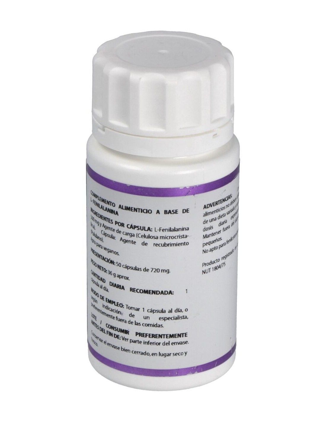 En el síndrome de abstinencia evita los bajones fuertes al regular la noradrenalina y la adrenalina. Composición por cápsula:500 mg de L-Fenilalanina. Modo de empleo:Tomar de 2 a 3 cápsulas al día fuera de las comidas. Presentación:Bote de 50 cápsulas. Precauciones:No debe darse con inhibidores de la MAO ni en personas con fenilcetonuria.
